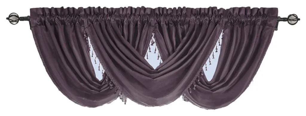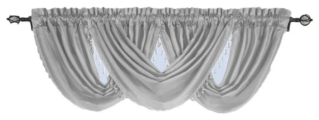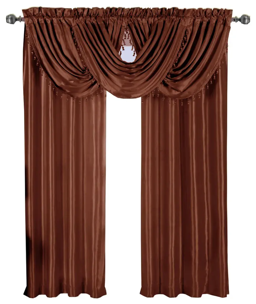 Enhance your privacy while embellishing your living space with this Soho faux silk waterfall Valances. Features a texture-rich and colorful panels that adds an elegant touch to any room decorations. This window treatment provides a quality, durability and style. With a soft faux-Silk this panel provides effortless draping and versatility to your window. Material: Synthetic 100% PolyesterPattern: Soho Faux SilkSold as Single ValanceBrand Royal Tradition CollectionMachine washableAvailable Valance Size:Waterfall valance measures 57 Inch wide x 37 Inch longNote! The Picture shows three Single Waterfall Valances but it''s sold as Single Valance