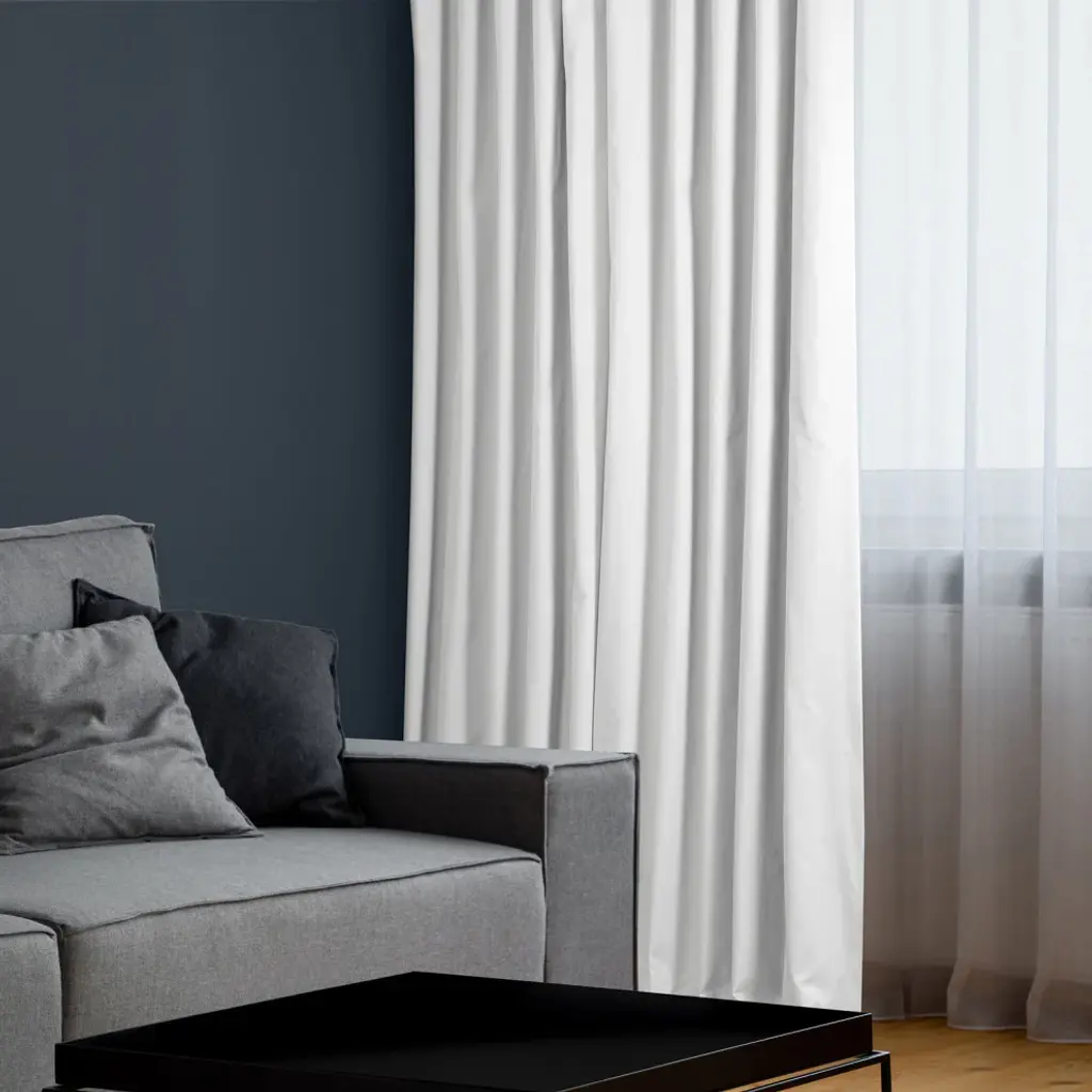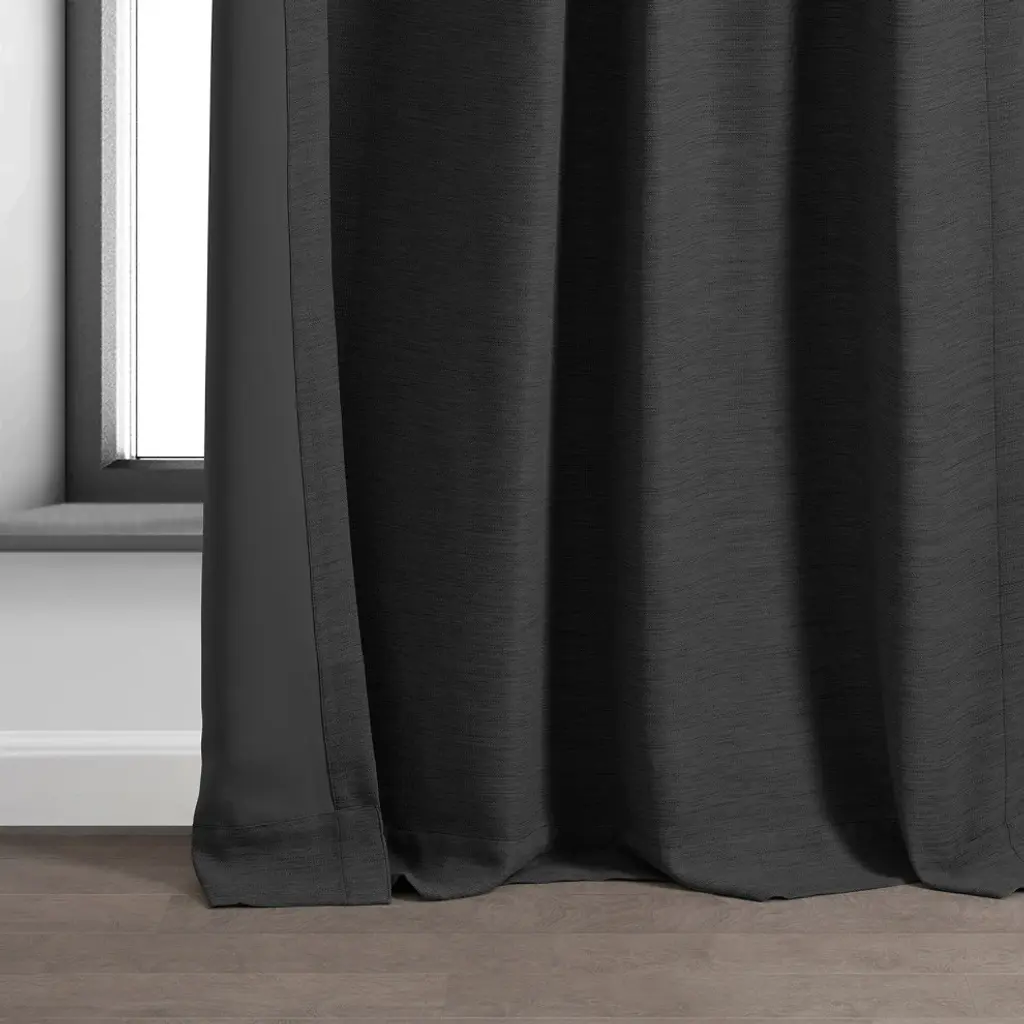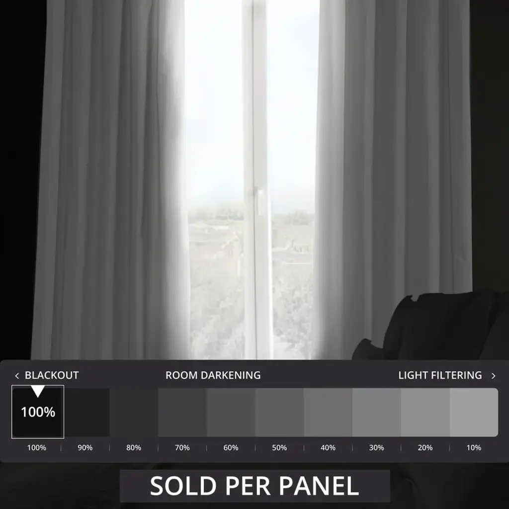 True Blackout Cotton Collection. Our Solid Cotton Blackout Curtains combine the natural look and feel of a 100% woven cotton face with our polyester blend 3 pass blackout lining. These panels are the perfect marriage of practical and pleasing in classic colors that are sure to fit into any d�cor. Additionally these blackout curtains provide 100% light blocking feature with superb insulation. Lightness of Popcorn personified with our Solid Cotton Blackout Curtain, provides natural hues to your room creating a serene atmosphere, perfect for unwinding after a long day.