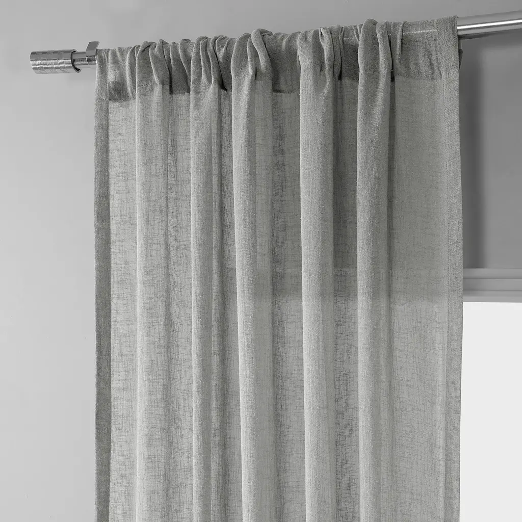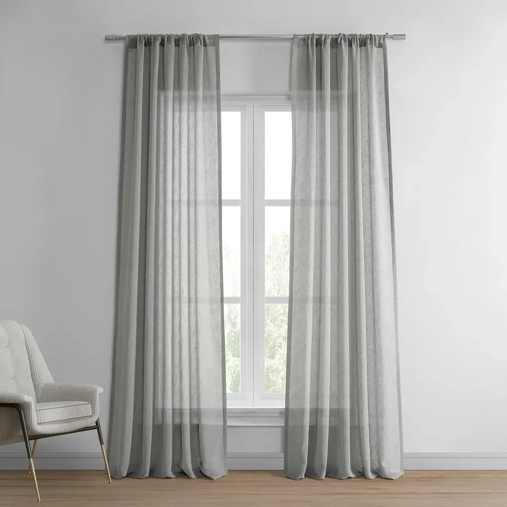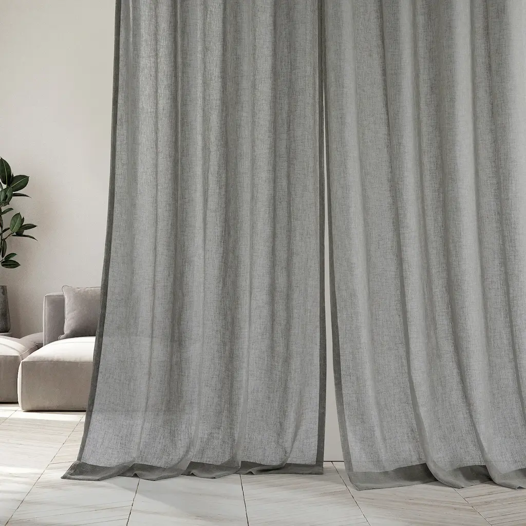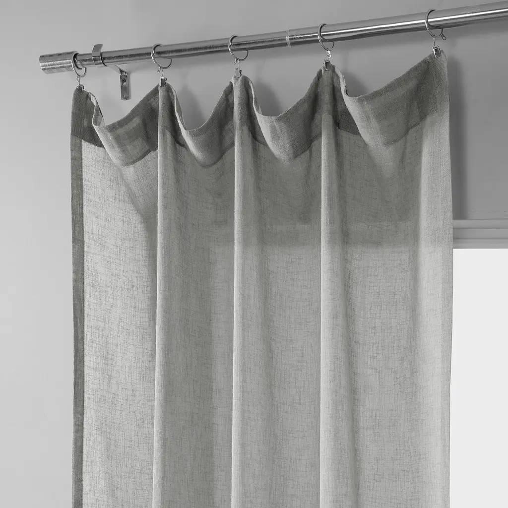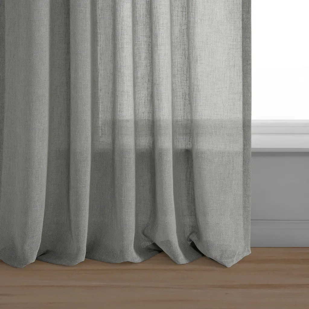 Solid Fauxlinen Sheer Curtain, Single Panel, Paris Gray, 50"x96"