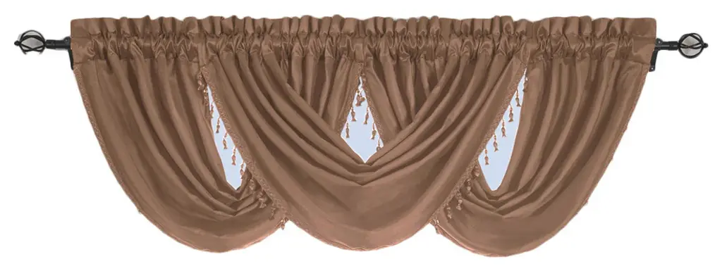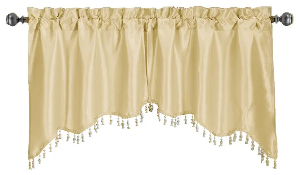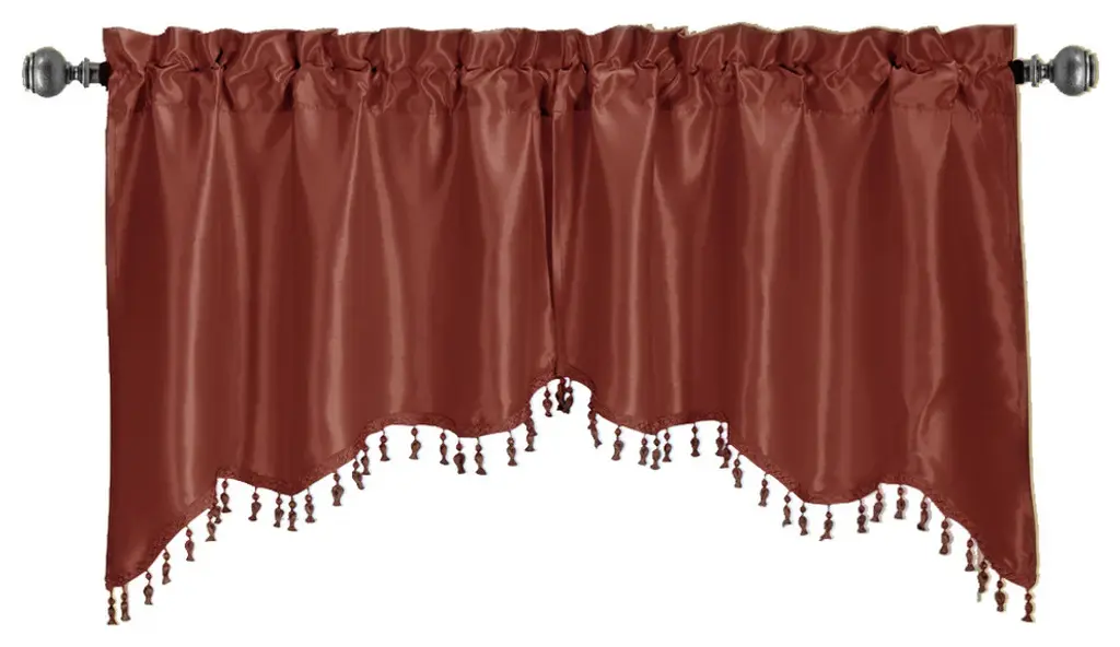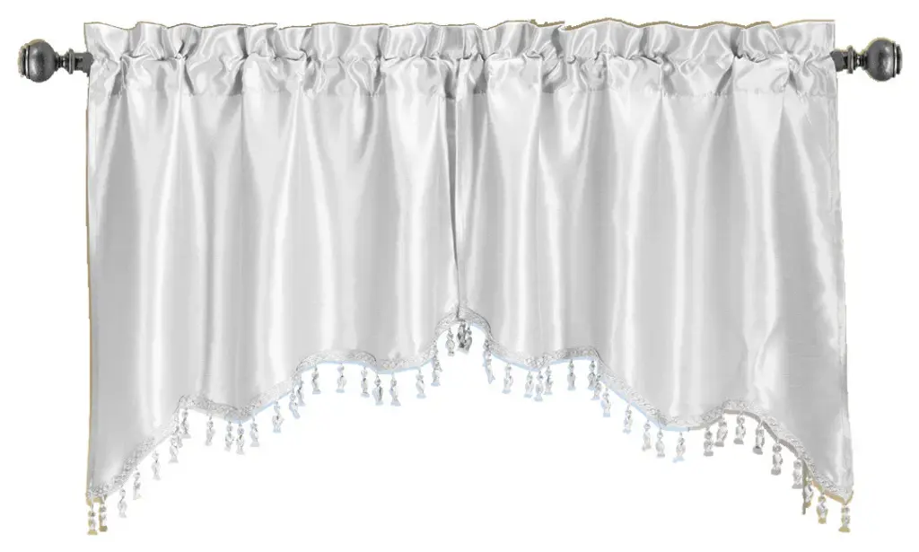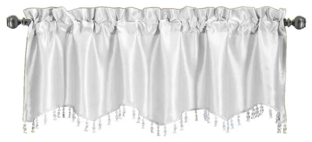 Simply modernize the decor in any room with this appealing beaded window valance. Available in a few different attractive solid colors to suit your taste and the needs of your space, this window valance is made of machine-washable polyester for easy care, and its rod pocket design makes installation a breeze. 100% polyesterRoyal Tradition CollectionMachine Washable in COLD WaterSold individually (Each package contains only one valance)Modernizes decor of any roomSolid PatternAvailable Size Includes: 70" wide X 17" long each Valance