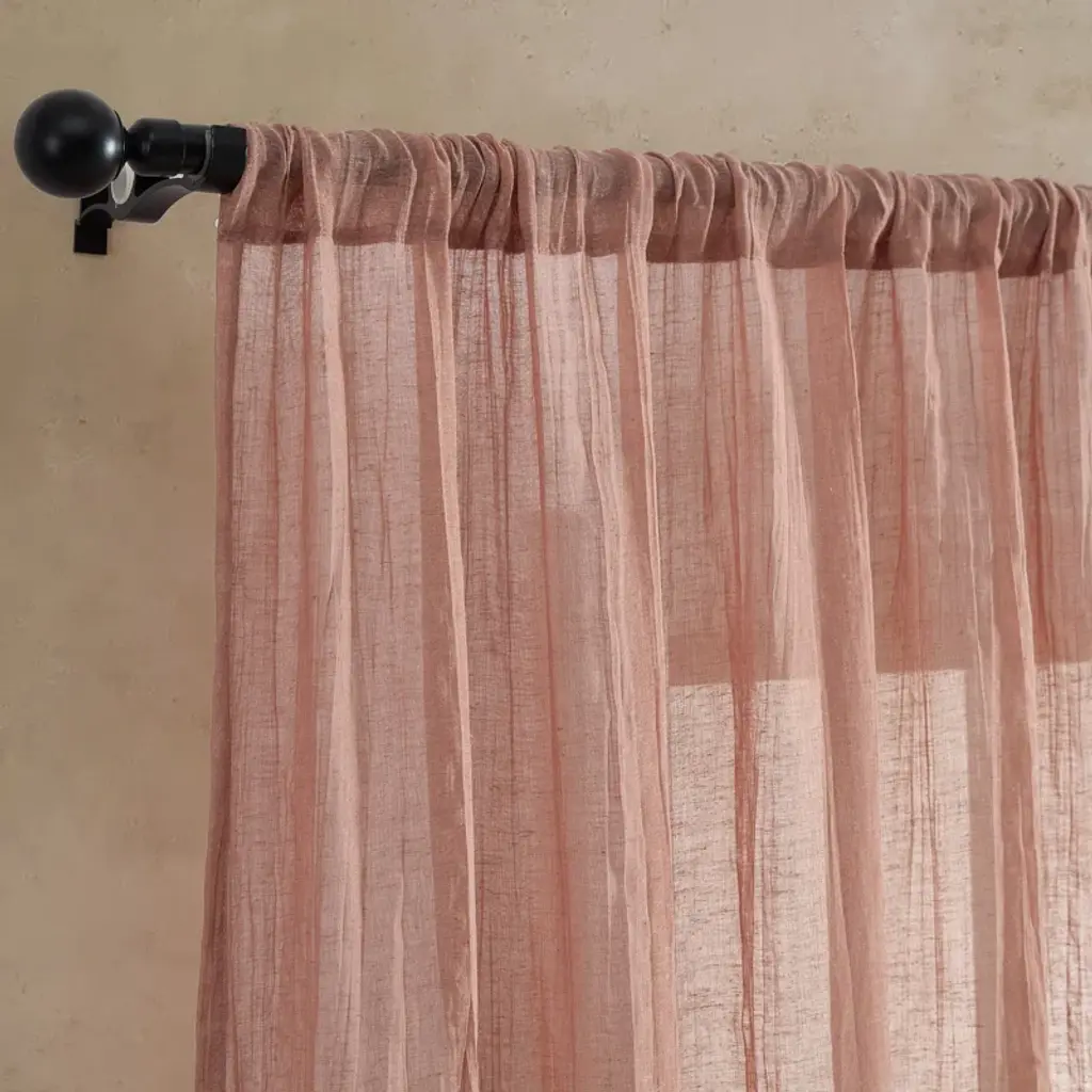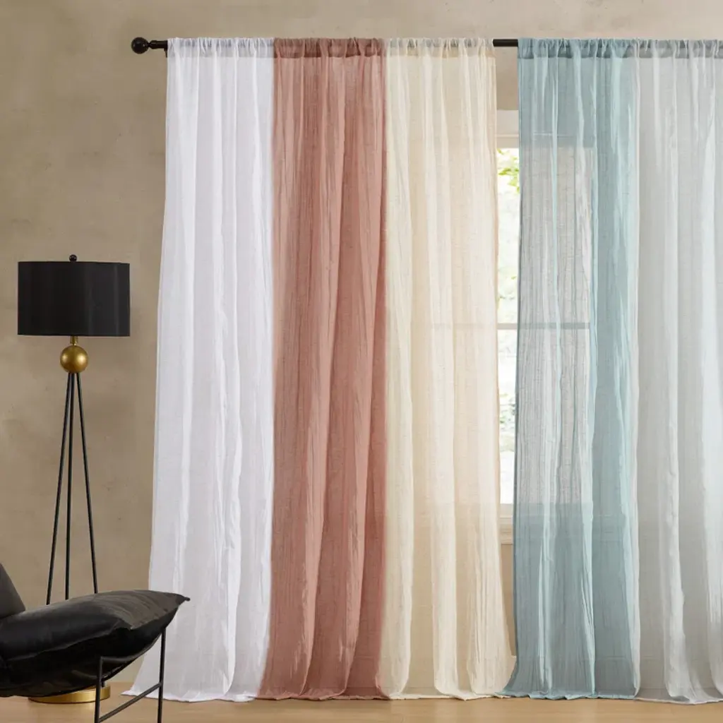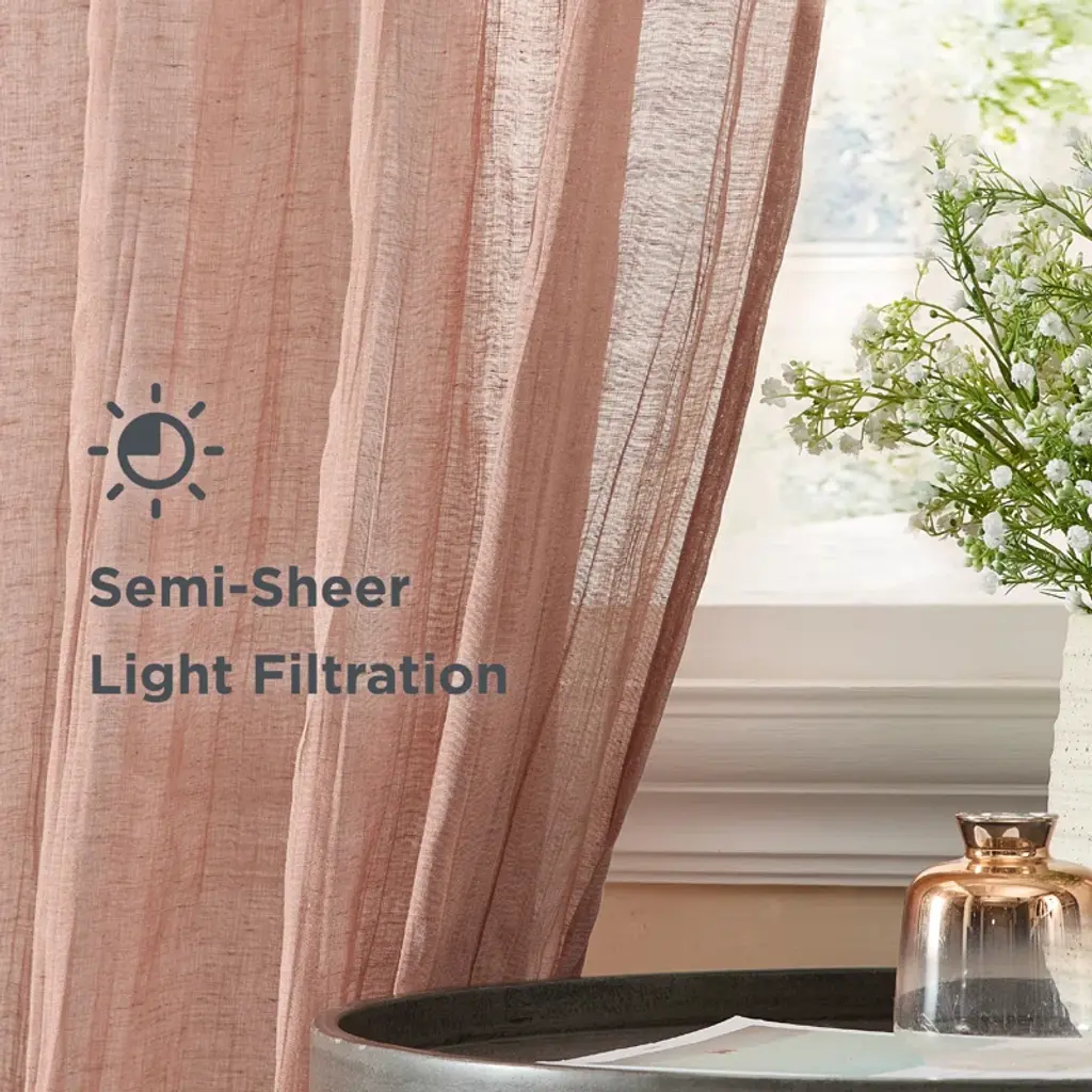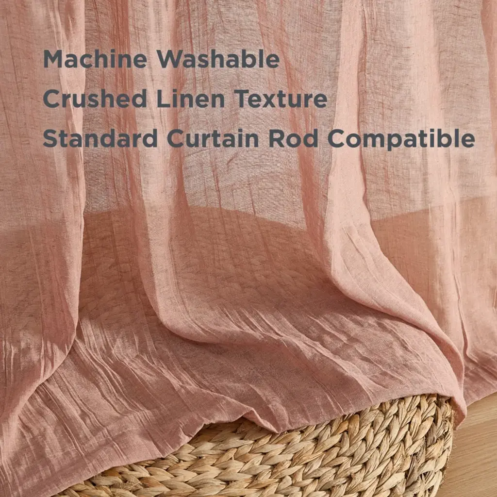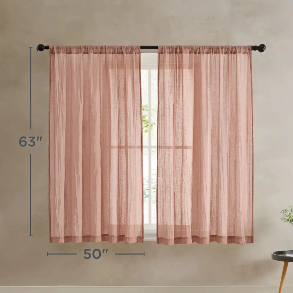 The All Modern Charter crushed semi-sheer window curtain collection brings effortlessly cool style to any home décor. Rich, textured care fabric specially woven to look and feel like linen will add chic style to any bedroom, living room, dining room, or office space. These neutral-toned light filtering panels enhance privacy and can be used as a single window treatment or paired with a blind or shade for added elegance. Each set includes (2) 50-inch wide window curtain panels, for a combined total width of 100 inches, and are available in 63, 84, 96, and 108-inch heights. Easy to hang extra wide panel features a 3.5-inch rod pocket header and fits most standard curtain rods up to 1.5 inches. Maintenance is a breeze as these durable panels are machine washable and dryable. Machine wash cold, delicate cycle with mild detergent. Do not bleach. Tumble dry low. Cool iron if needed. 90% polyester; 10% linen.
