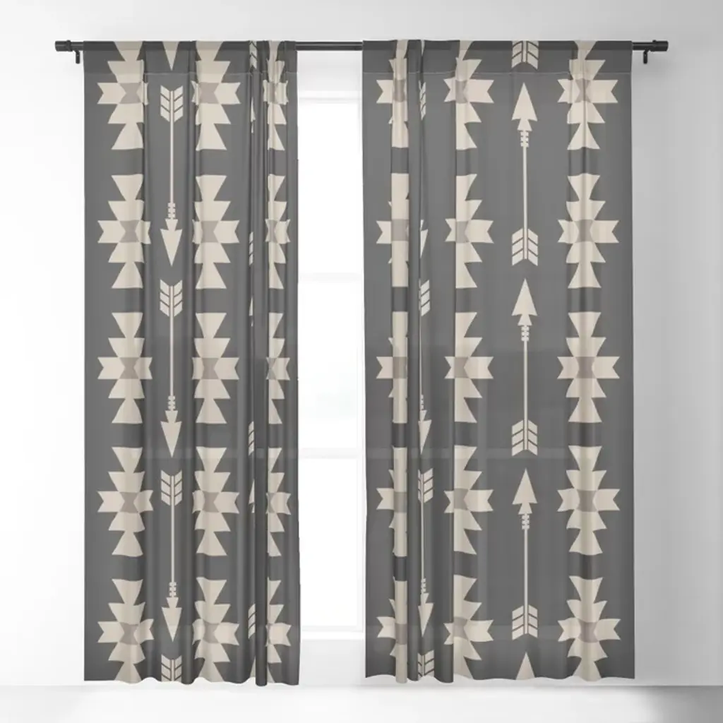 Southwestern Arrow Pattern 233 Black And Beige Curtain