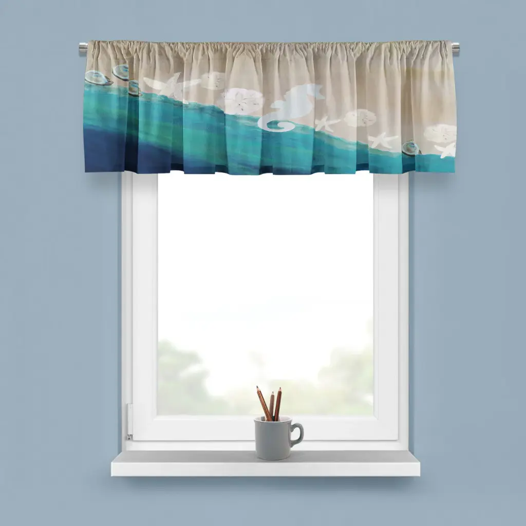 Transform your kitchen into a serene coastal retreat with our exquisite 60" x 14" coastal valances. Crafted from high-quality, durable fabric, these valances feature a charming blend of ocean-inspired hues and delightful nautical patterns, reminiscent of sandy shores and gentle waves. Ideal for accentuating your window decor, each valance provides just the right amount of light filtering while maintaining your privacy. The easy-to-hang design ensures a hassle-free installation, allowing you to enjoy a breezy, beachy atmosphere in no time. Whether you're hosting a seaside dinner party or simply enjoying a quiet morning coffee, these valances will infuse your space with a refreshing coastal vibe. Pair them with matching curtains or let them stand alone for a simple yet stylish statement. Elevate your kitchen decor with our coastal valances and bring the beauty of the beach into your home!