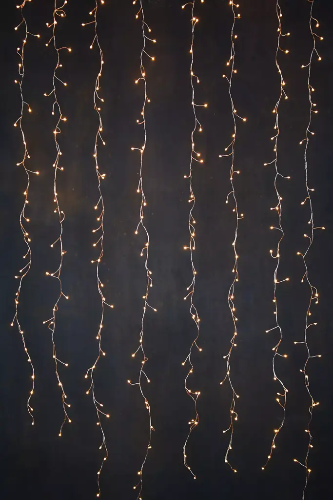 Designed exclusively for terrain, this twinkling multi-strand curtain includes eight connected strands of LED lights to illuminate the home indoors and out.