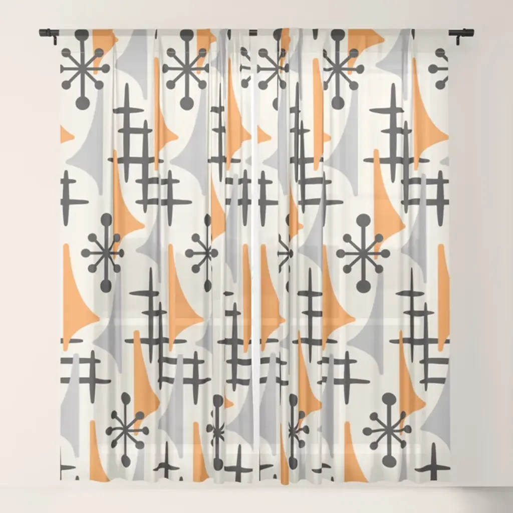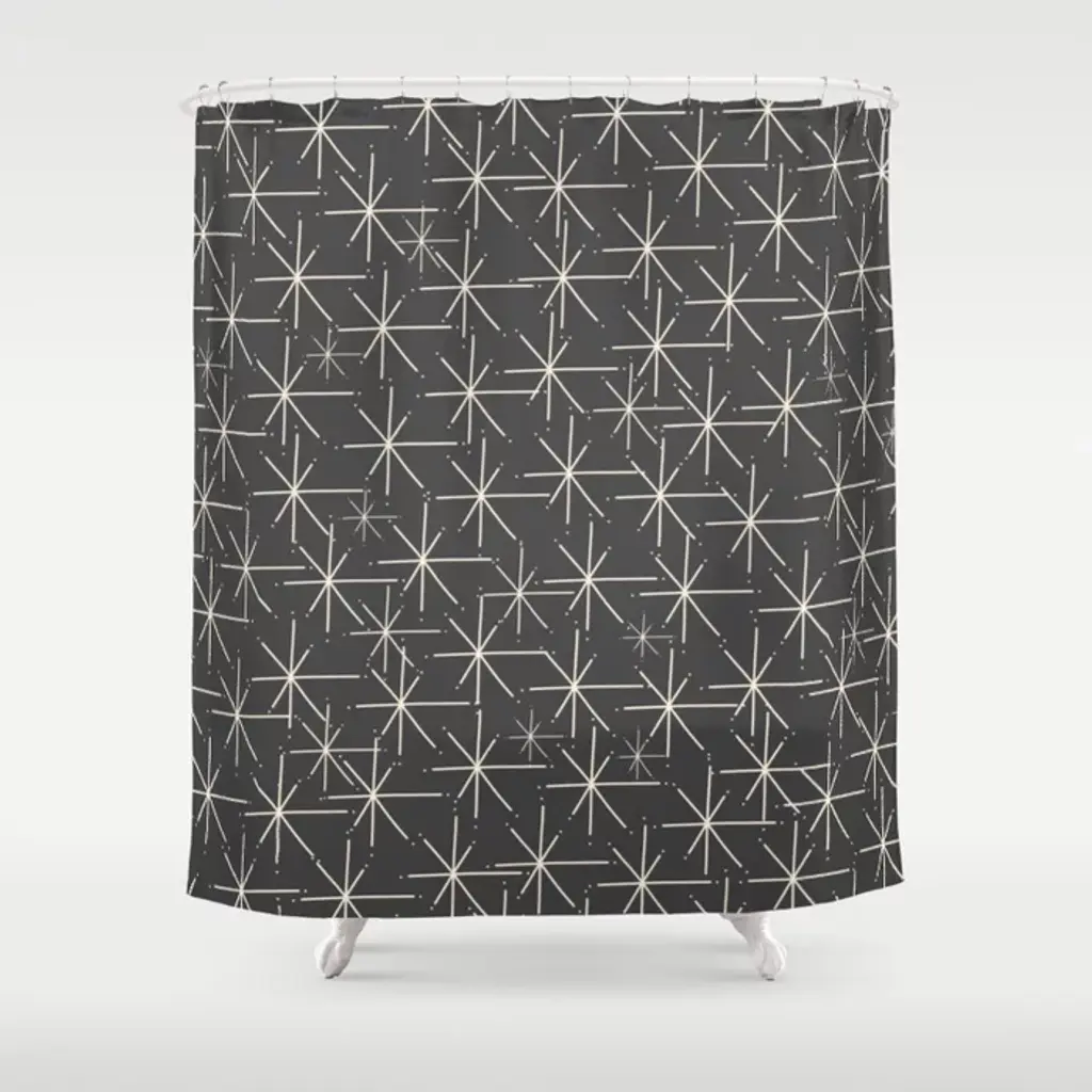 Stella - Atomic Age Mid Century Modern Starburst Pattern In Charcoal Gray And Almond Cream Curtain