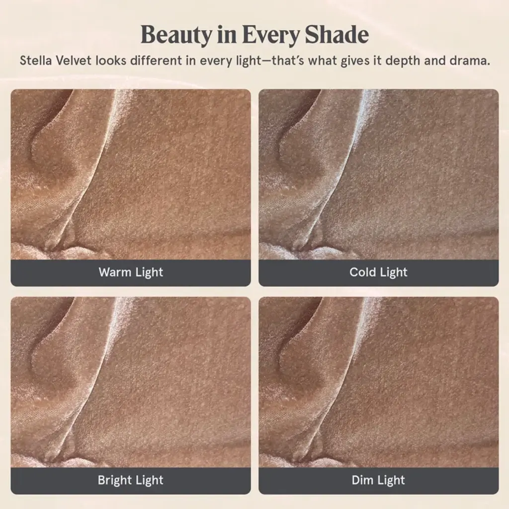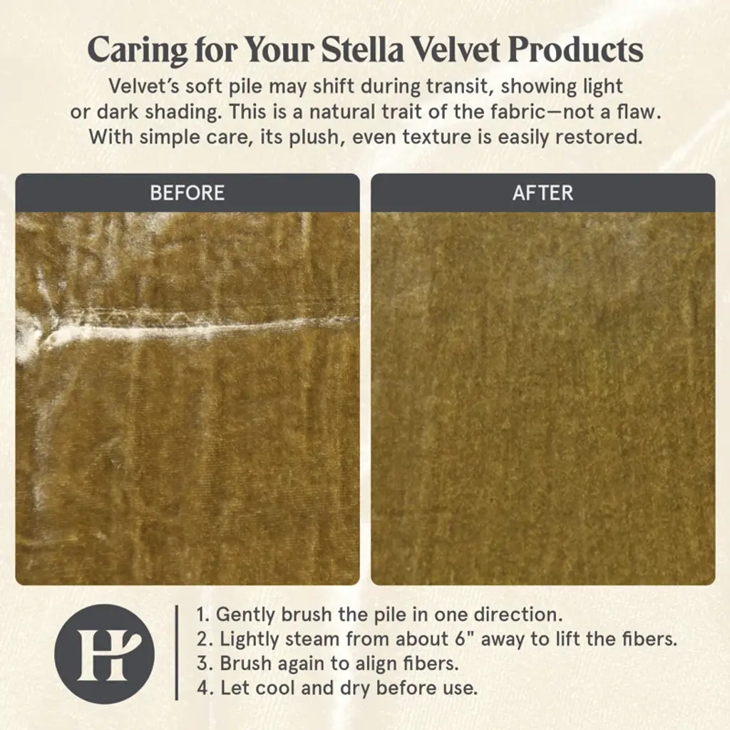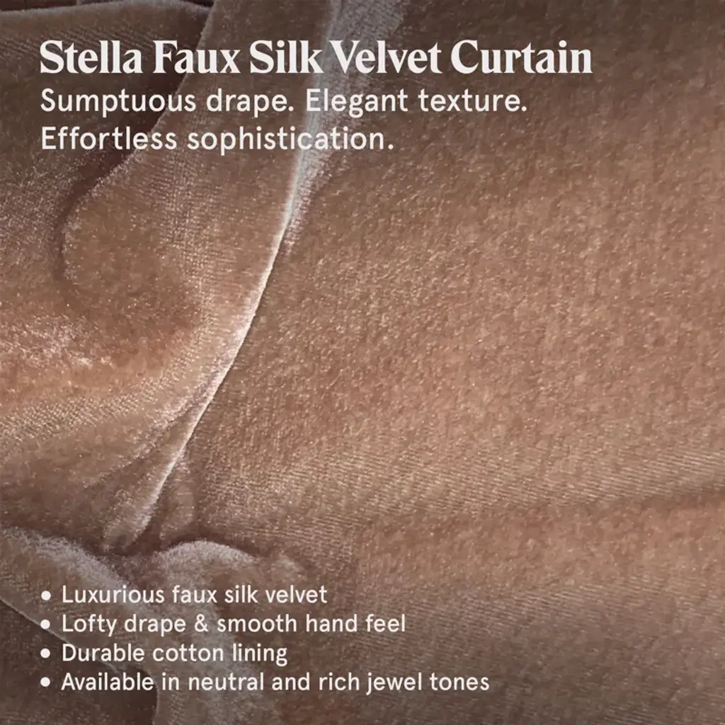 Drape your windows in the sumptuous elegance of our Stella Lined Silk Velvet Curtain. Crafted from lustrous faux silk velvet, this curtain boasts a rich drape and smooth hand feel, bringing an air of relaxed sophistication to any room. Available in a range of neutral hues and deep jewel tones, it’s designed to mix and match effortlessly with traditional, Western, or rustic styles. Pair it with other pieces from our Stella Collection for a cohesive, polished look. Please note: Color may vary depending on your room’s lighting. Natural daylight, warm indoor bulbs, and shadows can each bring out different tones in the fabric.
