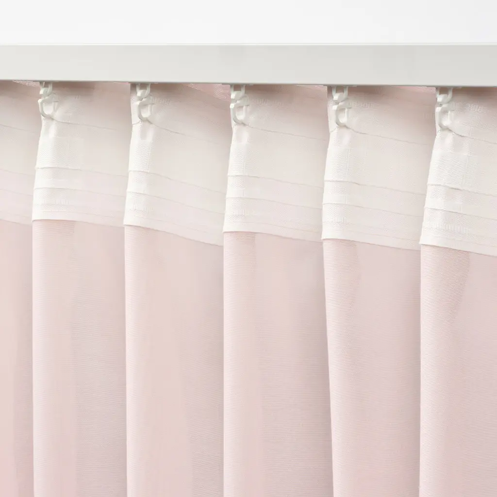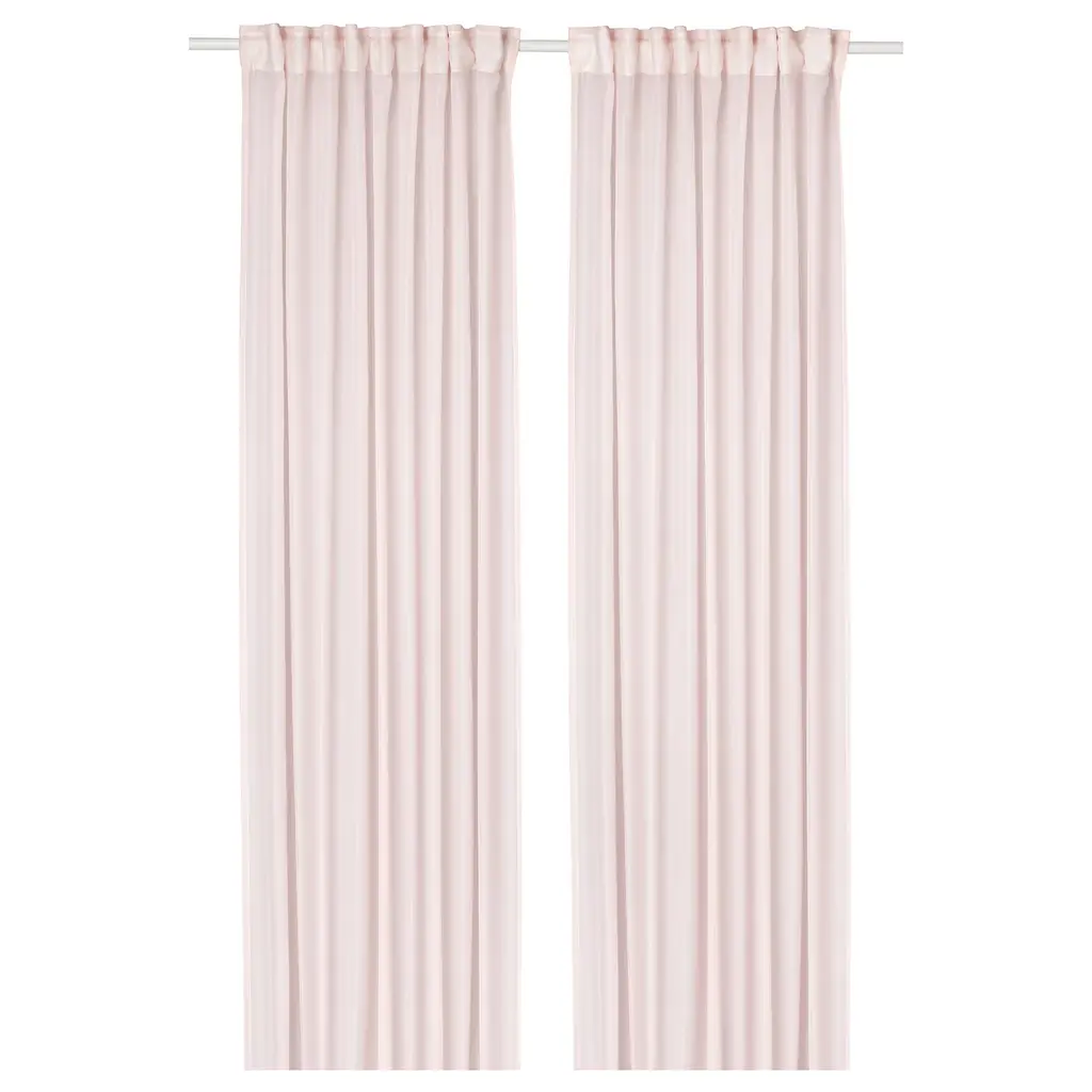 STENFRÖ Sheer curtains, 1 pair - pink/with heading tape 57x98 ". The sheer fabric diffuses daylight and softens glare on TV/screens. You are connected to the world outside and feel a sense of privacy during the day. Ideal for layered solutions with curtains or blinds. Curtains, 1 pair included