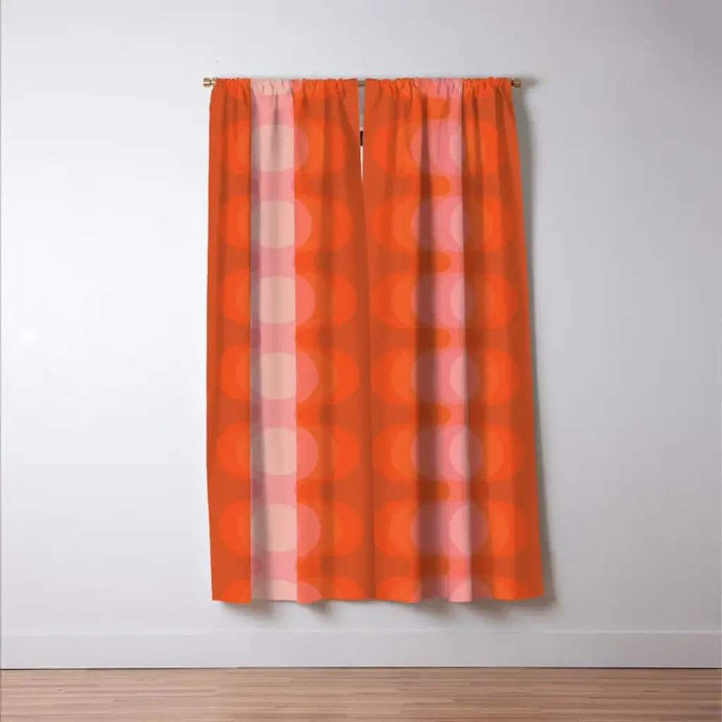 Blackout curtains are crafted with 100% woven polyester with a linen-like texture.Light-Filtering curtains are crafted with 100% mid-weight polyester.Sheer curtains are crafted with 100% lightweight polyester.Single sided print with white on reverse.Available in single or double panel options (double panels feature the same design on both).4" bottom pocket for easy hanging on any curtain rod (please note: artwork will appear upside down on non-patterned designs).Machine washable for easy care.Please note: Color variations may occur between on-site previews, your screen, and the printed fabric.Blackout, Light-Filtering, and Sheer Curtains are easy to care for:Machine wash cold.Use gentle cycle.Tumble dry low.SHIPPING: Items are made to order and typically ship within 3-4 business days. Click here for more information about delivery options.RETURNS: Return requests can be made within 30 days of your item(s) delivery. Click here for more information on returns.