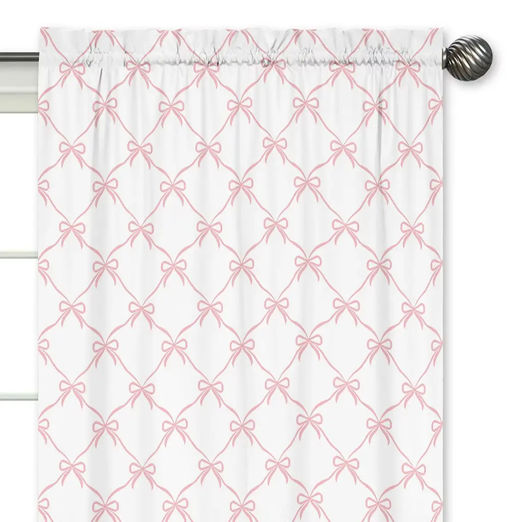 Ballerina and Ballet Bows Collection Sweet Jojo Designs elevates any room with a pair of lightweight window curtain panels. Use these window treatment coverings for the perfect room decor to add a stylish upgrade to your baby nursery, family room, foyer, gaming room, guest room, home gym, home office, kitchen, livingroom, apartment, children bed room, classroom, teen college dorm, den, home theater, kids bed room, mud room, or play room. Made to fit standard rods up to 0.75 inches in diameter, Sweet Jojo Designs panels create a unique decorative frame on the sides of your windows when not closed to filter light into the room. These designer window coverings can be used as kitchen draperies, living room curtains, bedroom sheers, or office curtains to provide a soft and relaxing ambiance in any space as they diffuse natural light. Use with a multi-tiered rod can allow you to layer a valance on top of a curtain for a cascading or flowing effect for a unique interior design upgrade. Single layer rod pocket curtains are a great decorative addition to any room. These semi-opaque curtains feature exclusive patterns, prints and colors to match your favorite Sweet Jojo Designs collections and coordinate with your crib bedding sets, twin or queen bed sets, window valances, and room decor accessories to give you a complete look for any room you are wishing to transform! These brushed microfiber light filtering curtains are made of a single layer of fabric and feature an exclusive design of a shabby chic blush pink and white dancer princess bows print and are made to match the Ballerina and Ballet Bow Collection.