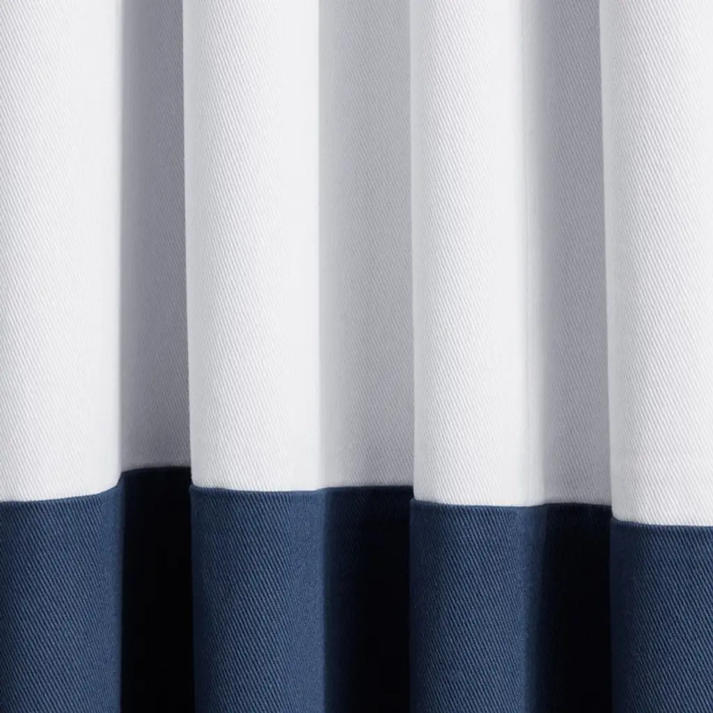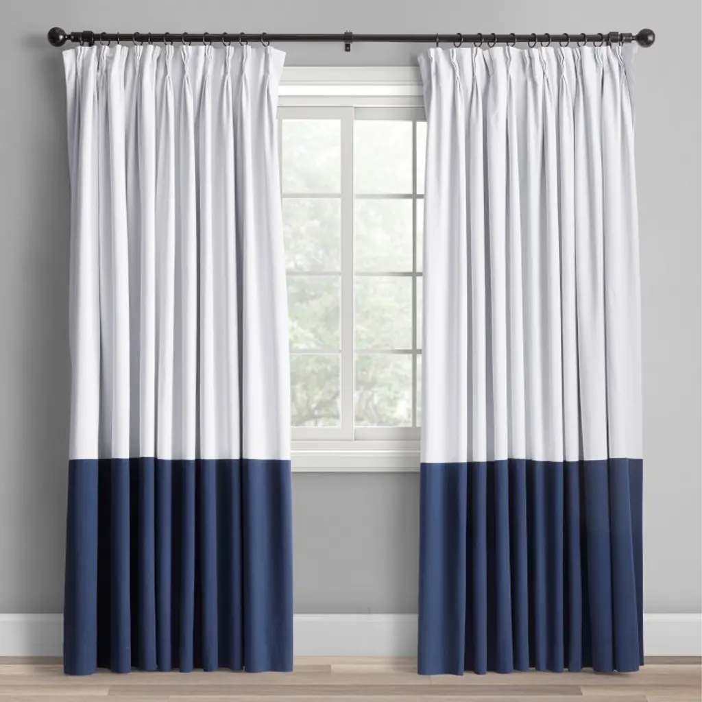 Our exclusive collection is inspired by the bespoke furnishings created for THE GEORGE, a circa 1902 boutique hotel renovated by cultural icon Bobbi Brown and her husband Steven Plofker. The piece-dyed curtains are woven of premium cotton twill and feature a contrast border in navy. They're tailored with white blackout lining and pinch-pleated tops for a graceful drape.
