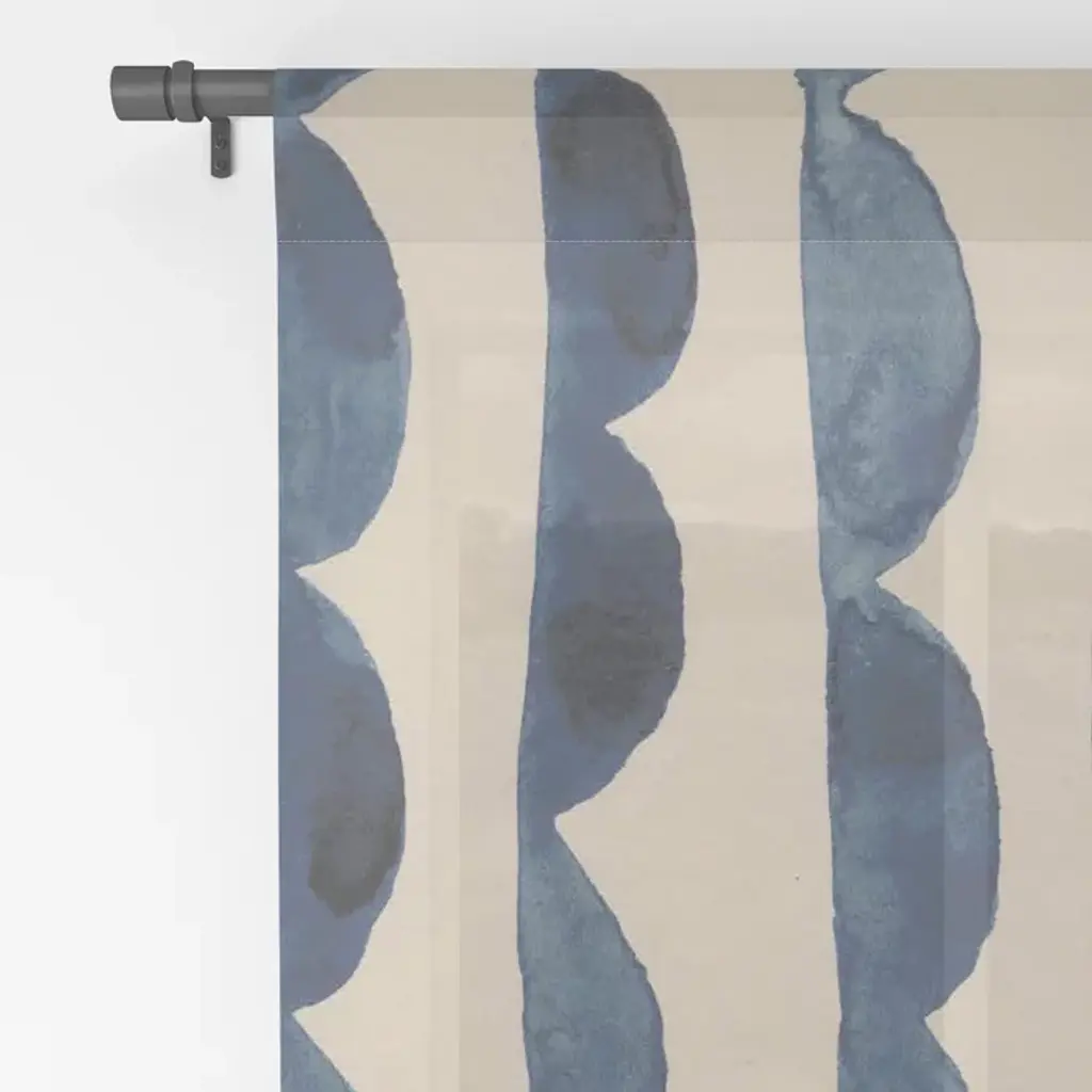 Thin Scalloped Line In Indigo Watercolor Blue Curtain