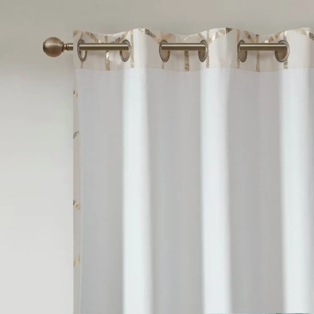 Freshen up your space with the enchanting style of Intelligent Design Raina Window Panel. The stunning panel flaunts a geometric, metallic silver print against a vibrant aqua ground for a fun and eye-catching look! Finished with a heavy 3 pass foamback liner, this panel is 100% total blackout providing energy efficiency and added privacy. Grommet top makes this panel easy to hang, open, and close through the day. Machine washable for easy care; complete the collection with coordinating bedding and shower curtain sold separately.