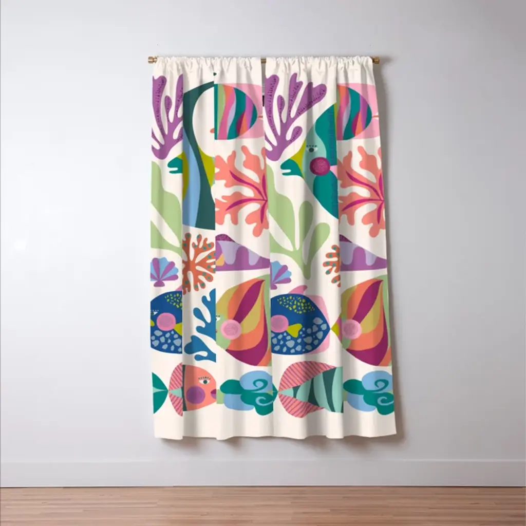 Blackout curtains are crafted with 100% woven polyester with a linen-like texture.Light-Filtering curtains are crafted with 100% mid-weight polyester.Sheer curtains are crafted with 100% lightweight polyester.Single sided print with white on reverse.Available in single or double panel options (double panels feature the same design on both).4" bottom pocket for easy hanging on any curtain rod (please note: artwork will appear upside down on non-patterned designs).Machine washable for easy care.Please note: Color variations may occur between on-site previews, your screen, and the printed fabric.Blackout, Light-Filtering, and Sheer Curtains are easy to care for:Machine wash cold.Use gentle cycle.Tumble dry low.SHIPPING: Items are made to order and typically ship within 3-4 business days. Click here for more information about delivery options.RETURNS: Return requests can be made within 30 days of your item(s) delivery. Click here for more information on returns.