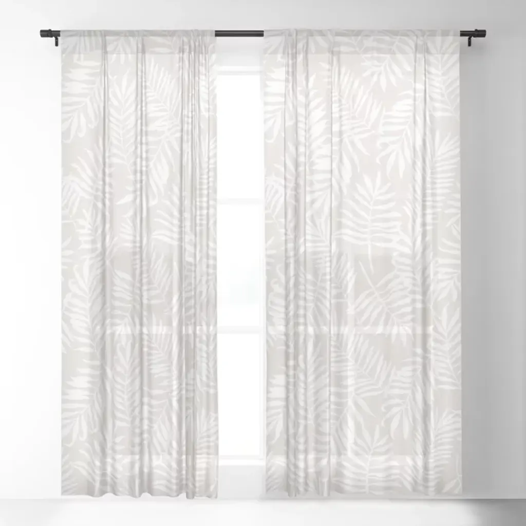 Tropical Palm Leaves - Palm Leaf Pattern - Sandy Beige Curtain