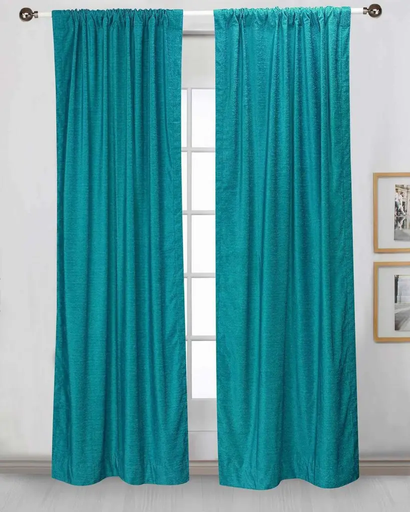 Turquoise Tab Top Velvet Curtain / Drape / Panel - Piece