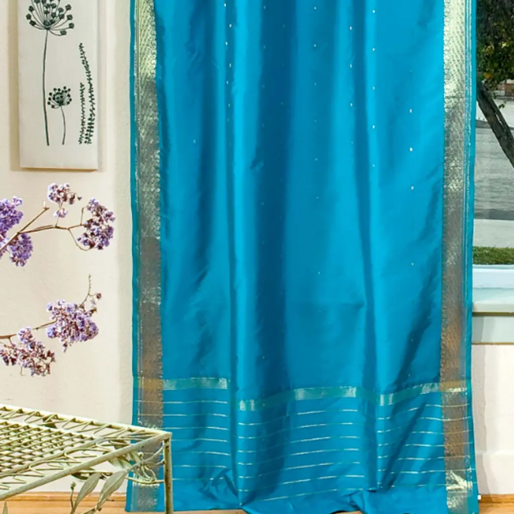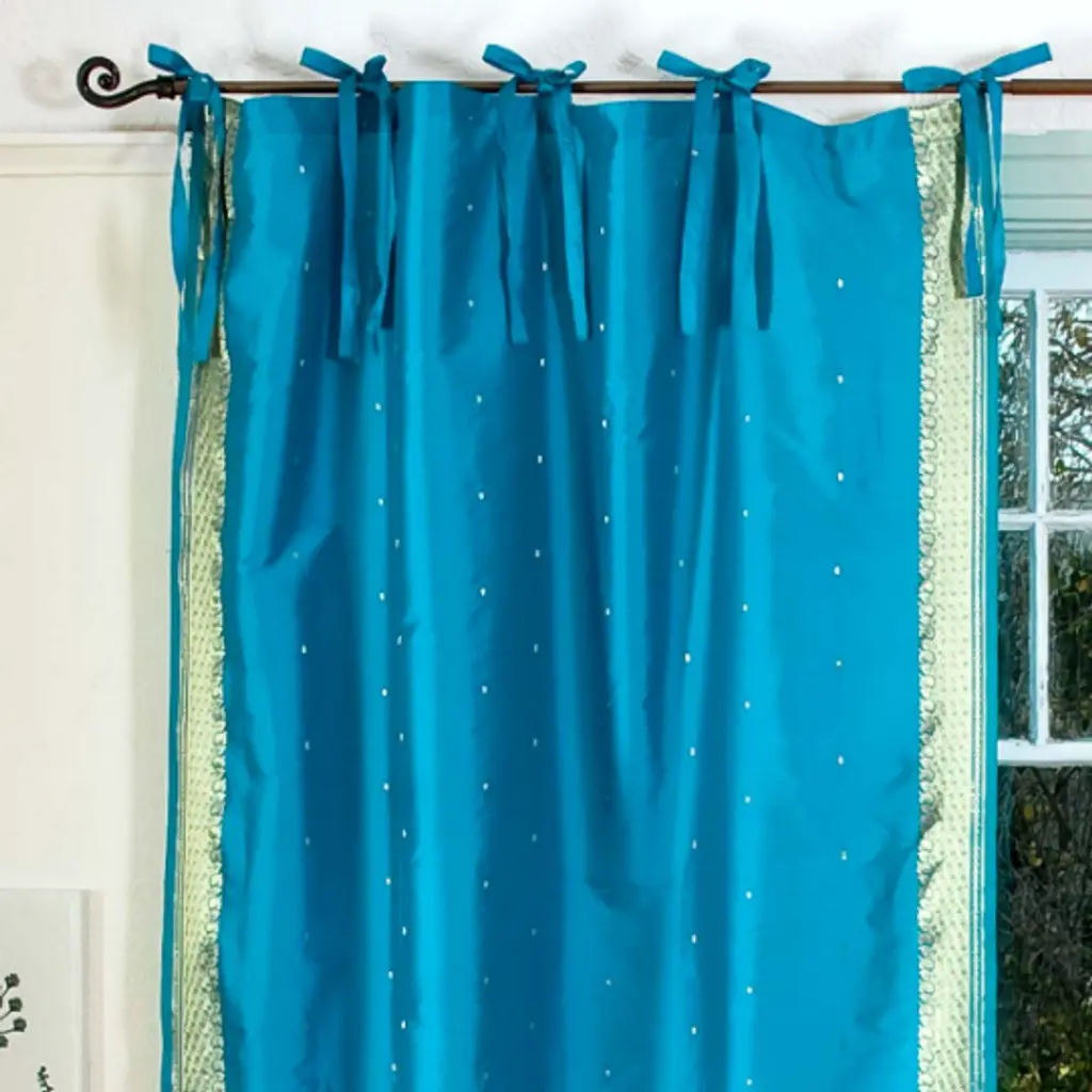 Turquoise Tie Top Sheer Sari Curtain / Drape / Panel - Piece