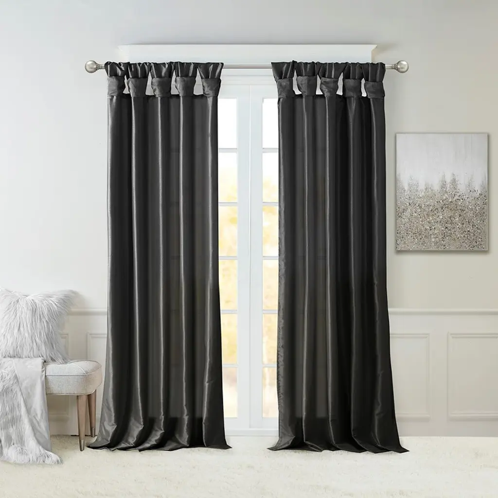 DESCRIPTION Give your home a decorator¡¯s touch with the Window Curtain. Made from a faux silk fabric, this elegant window curtain features a DIY twist tab top finish that creates rich, deep folds for a professional look. Added lining offers more privacy and a fuller appearance, while the luxurious sheen and rich color tone provides a touch of sophistication to your decor. While this window panel is also OEKO-TEX certified, meaning it does not contain any harmful substances or chemicals, this ensures quality comfort and wellness. Easy to hang, this tab top curtain turns any room into a gorgeous getaway. Hanging instructions are included. As shown in the image, two curtain panels need to be purchased for each window; Fits up to a 2in diameter rod. MATERIAL 100% polyester faux silk, polyester lining PRODUCT DETAILS 50x95in 1 Window Panel: 50inW x 95inL