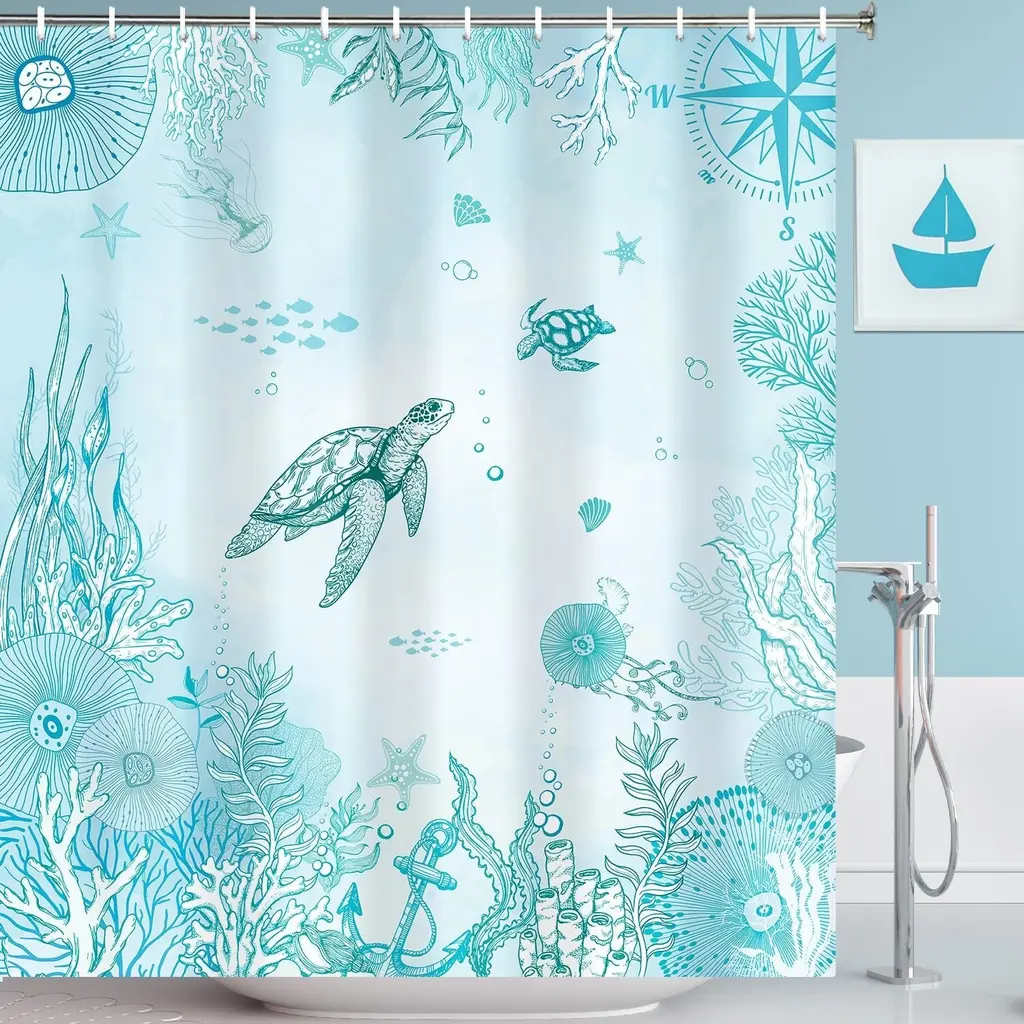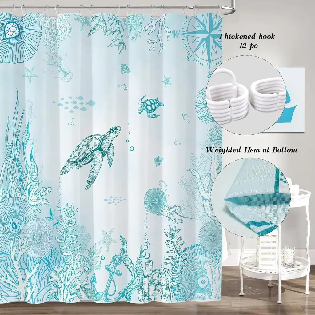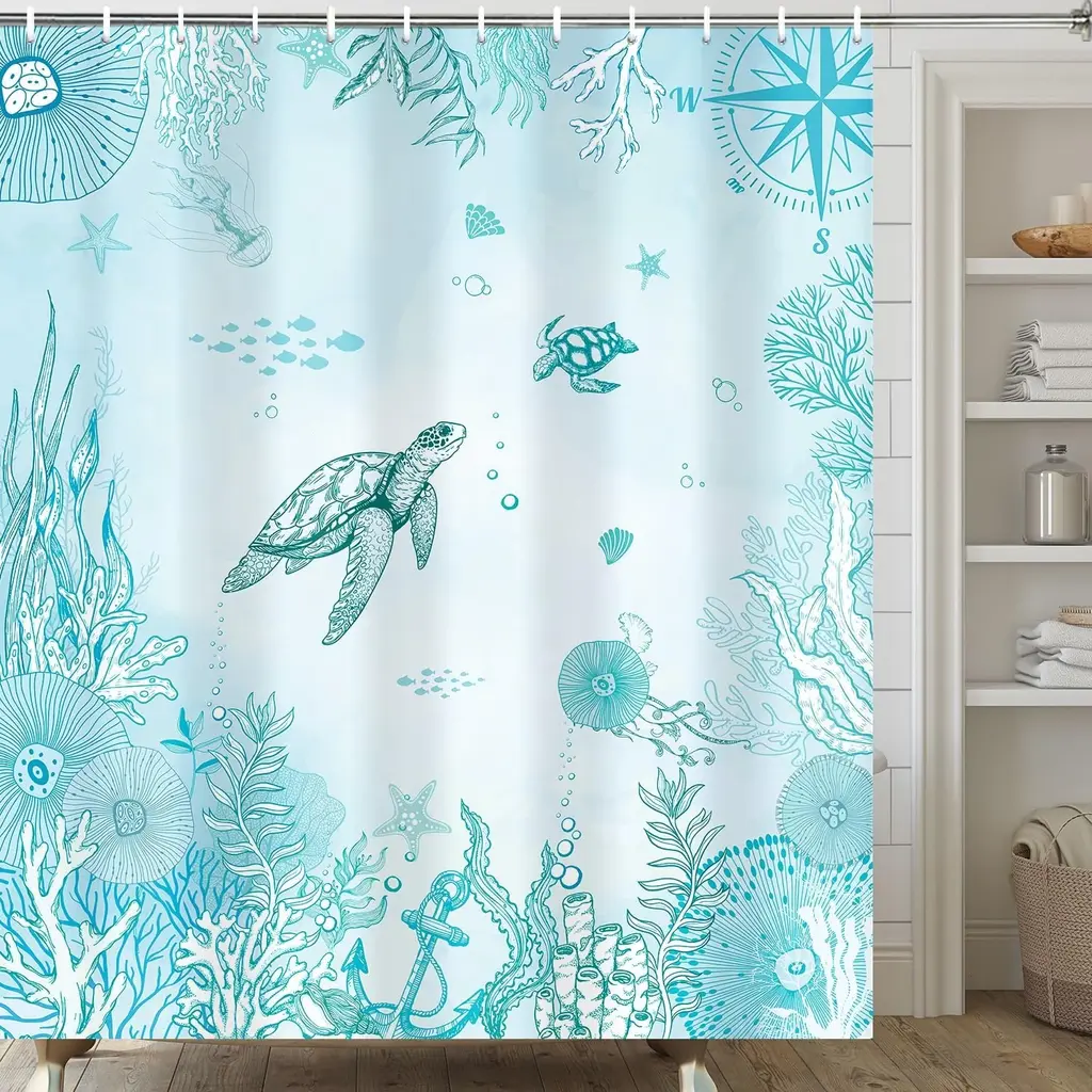 Underwater Jellyfish Seashell Bath Curtain Waterproof Fabric, 70"×70" - Multi