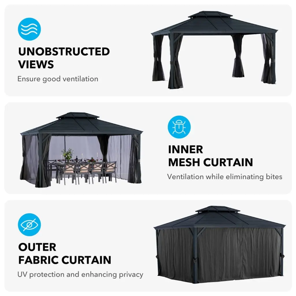 Unisoar Hardtop Gazebo With Breathable Privacy Curtain