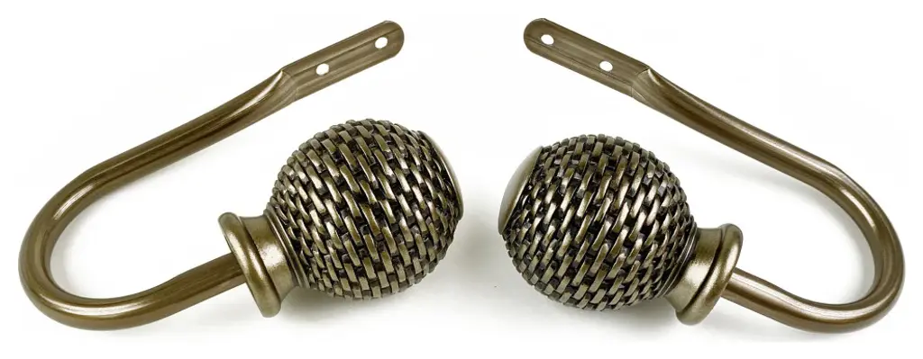 Elevate the style and functionality of your window treatment with Central Design Products latest addition - the 13/16" rod matching holdbacks. Our holdback pair is designed to add a refined touch to your home decor, while also serving a practical purpose. Each set includes a pair of decorative holdbacks and mounting hardware for easy installation. Our holdbacks feature a stunning resin finial, adding an alluring style to your curtains. Crafted with steel hooks and resin finials, our holdbacks are built to last and provide reliable support to your curtains. Upgrade your window treatment with these matching holdbacks and enjoy a refined and sophisticated touch to your home decor. Order now to experience the difference! Finial measurements: 2-3/4"Wx2-1/2"Hx1-1/2"D J-hook projection: 3 inches J-hook measurements: 5.75"Lx3"W