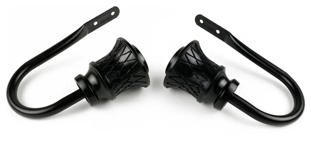 Elevate the style and functionality of your window treatment with Central Design Products latest addition - the 13/16" rod matching holdbacks. Our holdback pair is designed to add a refined touch to your home decor, while also serving a practical purpose. Each set includes a pair of decorative holdbacks and mounting hardware for easy installation. Our holdbacks feature a stunning resin finial, adding an alluring style to your curtains. Crafted with steel hooks and resin finials, our holdbacks are built to last and provide reliable support to your curtains. Upgrade your window treatment with these matching holdbacks and enjoy a refined and sophisticated touch to your home decor. Order now to experience the difference! Finial measurements: 2-1/2"Wx2-1/2"Hx1-1/2"D J-hook projection: 3 inches J-hook measurements: 5.75"Lx3"W
