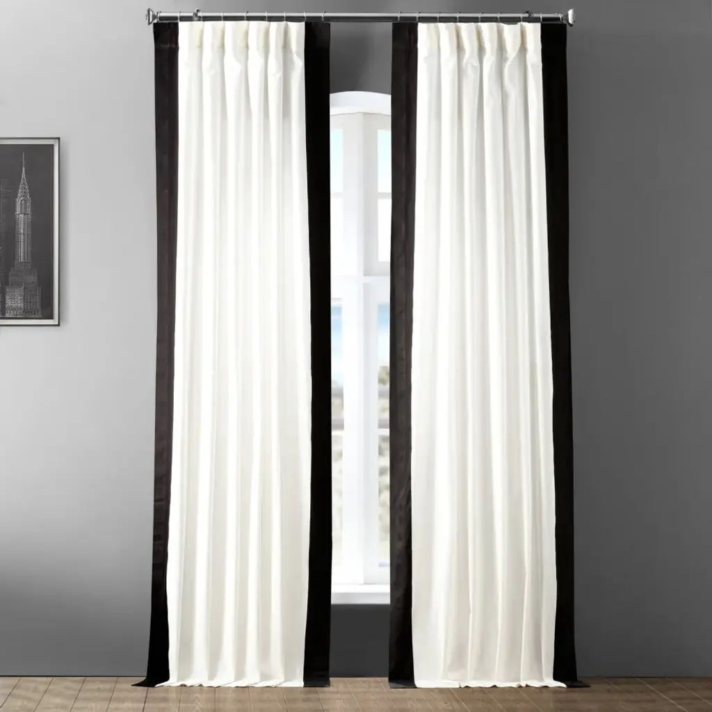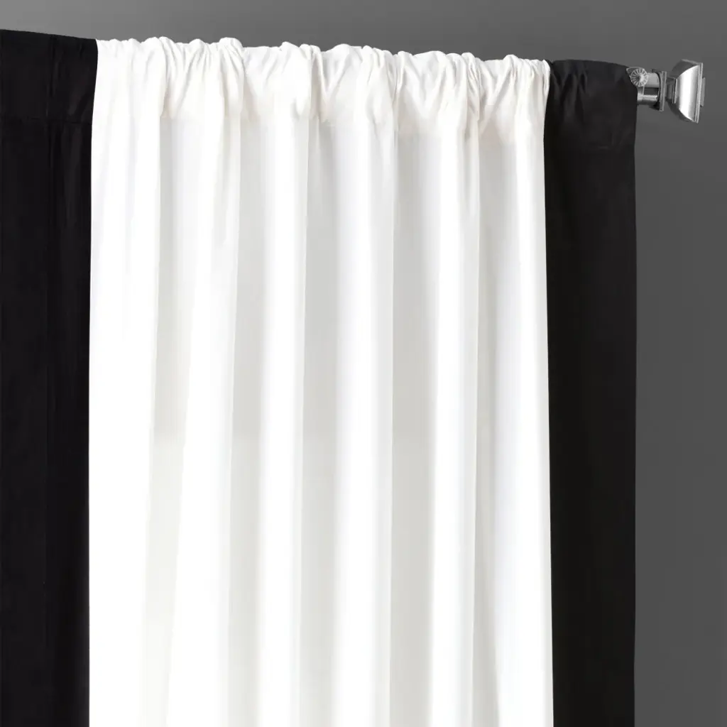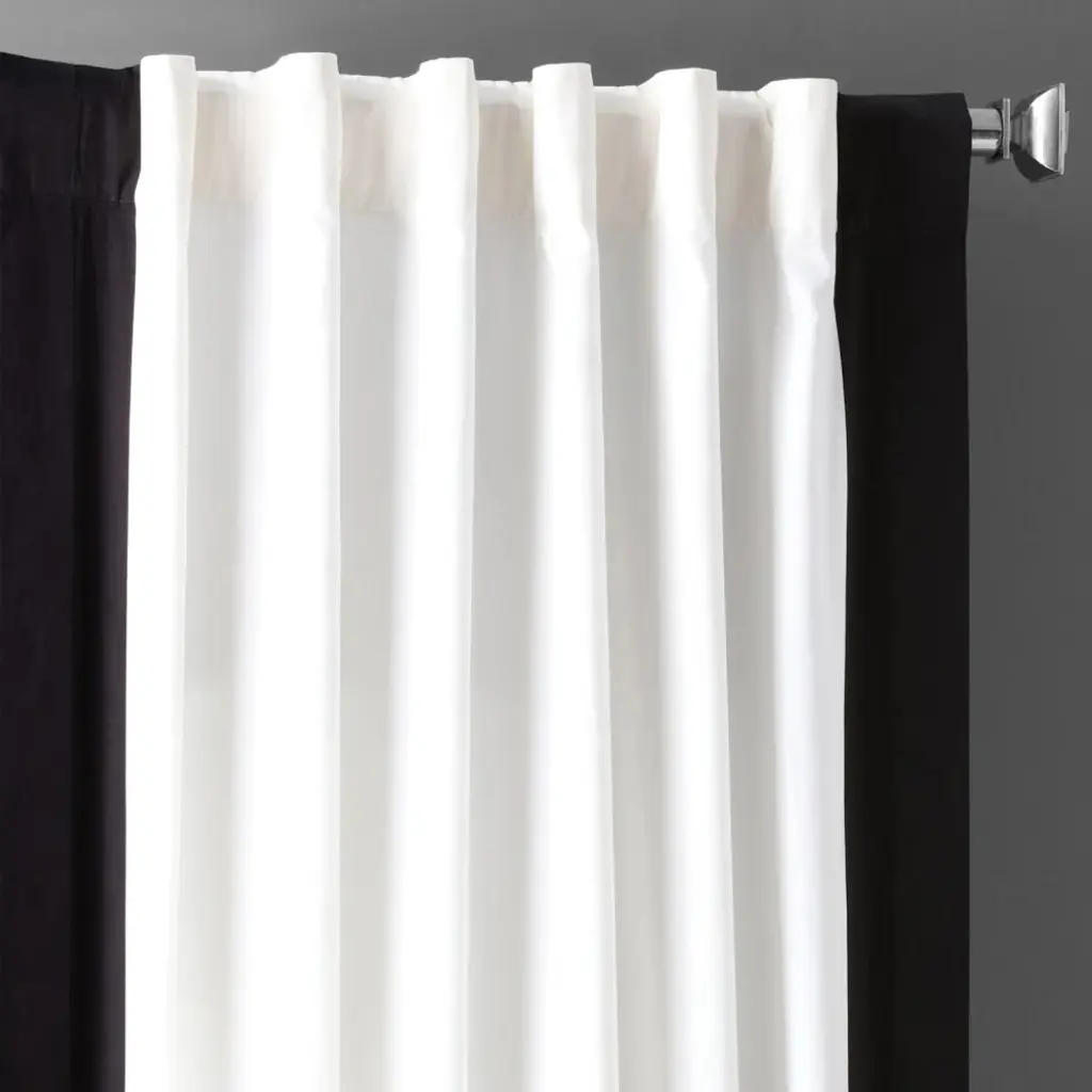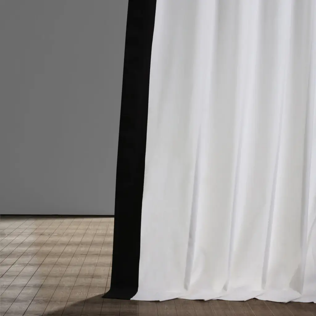 Our Colorblock Panama Curtains combine style with ease. These curtains have an added design element that adds contrast to our most popular solid Panama Cotton drape. Black and Warm Off-White are a classic combination that never goes out of style. It is a perfect combination for a variety of interior design looks.SOLD PER PANEL100% CottonUnlinedPole Pocket with Hook Belt & Back TabsWeighted HemDry Clean Only