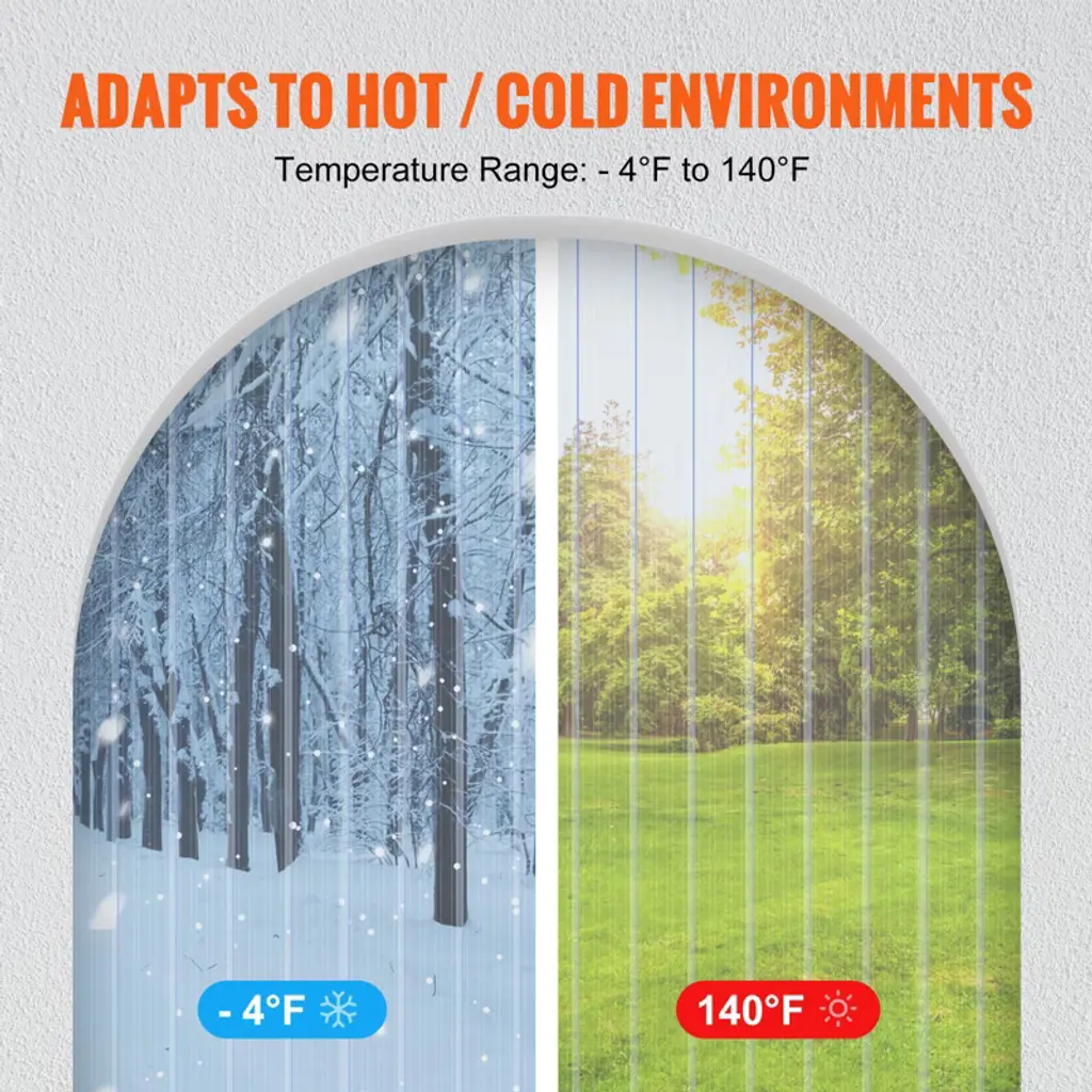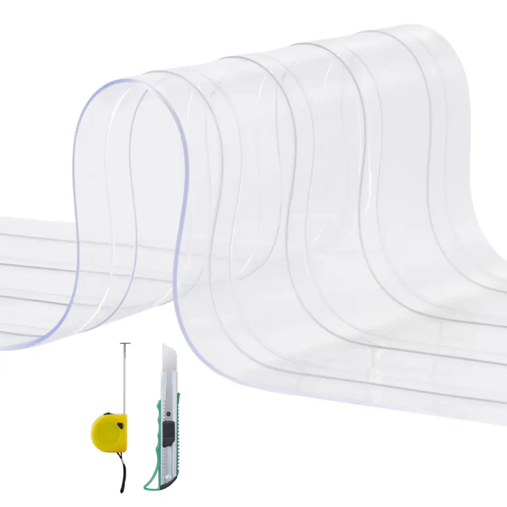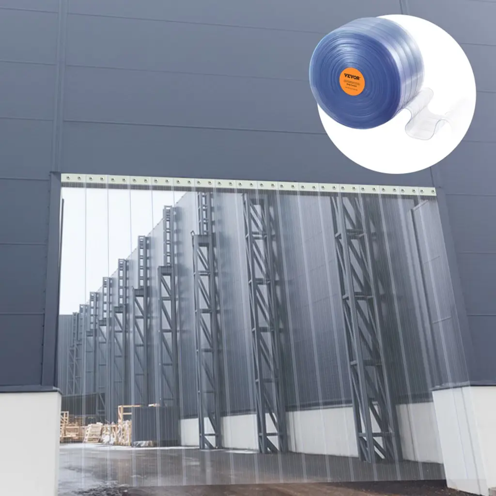 Feature: Durable PVC Material: Say hello to our PVC strip curtain. It's soft, elastic, and crafted to last. There is no irritating smell here, and talk about easy to clean—your everyday dish soap will do the trick. Plus, it measures 164' x 8"/5000 x 20 cm and is a hardy 0.08 in/2 mm thick. Clear Vision, Full Protection: Imagine a world where you can see everything outside, but those pesky flies and chilling winds can't get in. That's what our PVC strip curtain promises—a crystal-clear view and a cozy, undisturbed space just for you. All-Weather Friend: From a chilly -4℉ warehouse to a steamy 140℉ kitchen, this plastic strip curtain stands strong. Picture this: summer days without losing your cool air and winter times when the cold stays out. Yep, that's our strip curtain. No More Sticky Situations: Thanks to our plastic door strip's clever ribbed design, you can enjoy smoother entries and exits—it just naturally hangs straight to lock in that comfy room temperature. We're adding a handy utility knife and a 9.8 ft/3 m tape measure. Cut and size it your way to fit your space just right. From Warehouses to Whiskers: Our clear PVC strip isn't just for warehouses, factories, supermarkets, shopping malls, or halls. Imagine a pet door that lets your furry friends come and go as they please. It's the little things that make a big difference. Package Content: 1 x Strip Curtain 1 x Tape Measure 1 x Utility Knife
