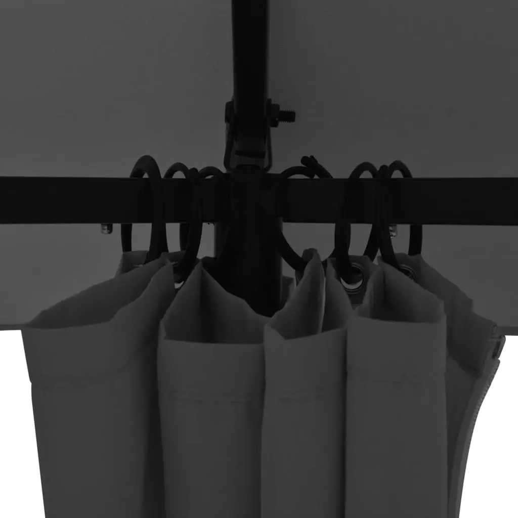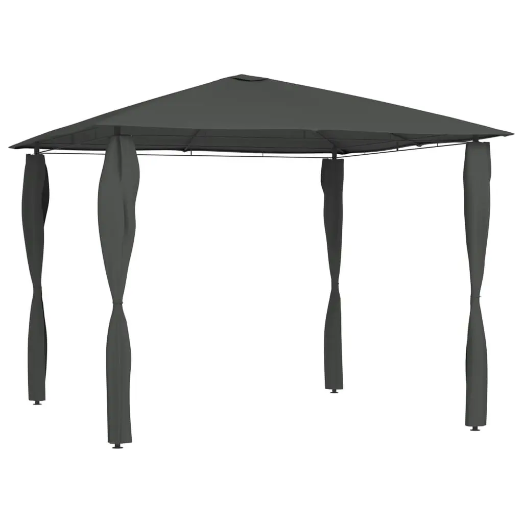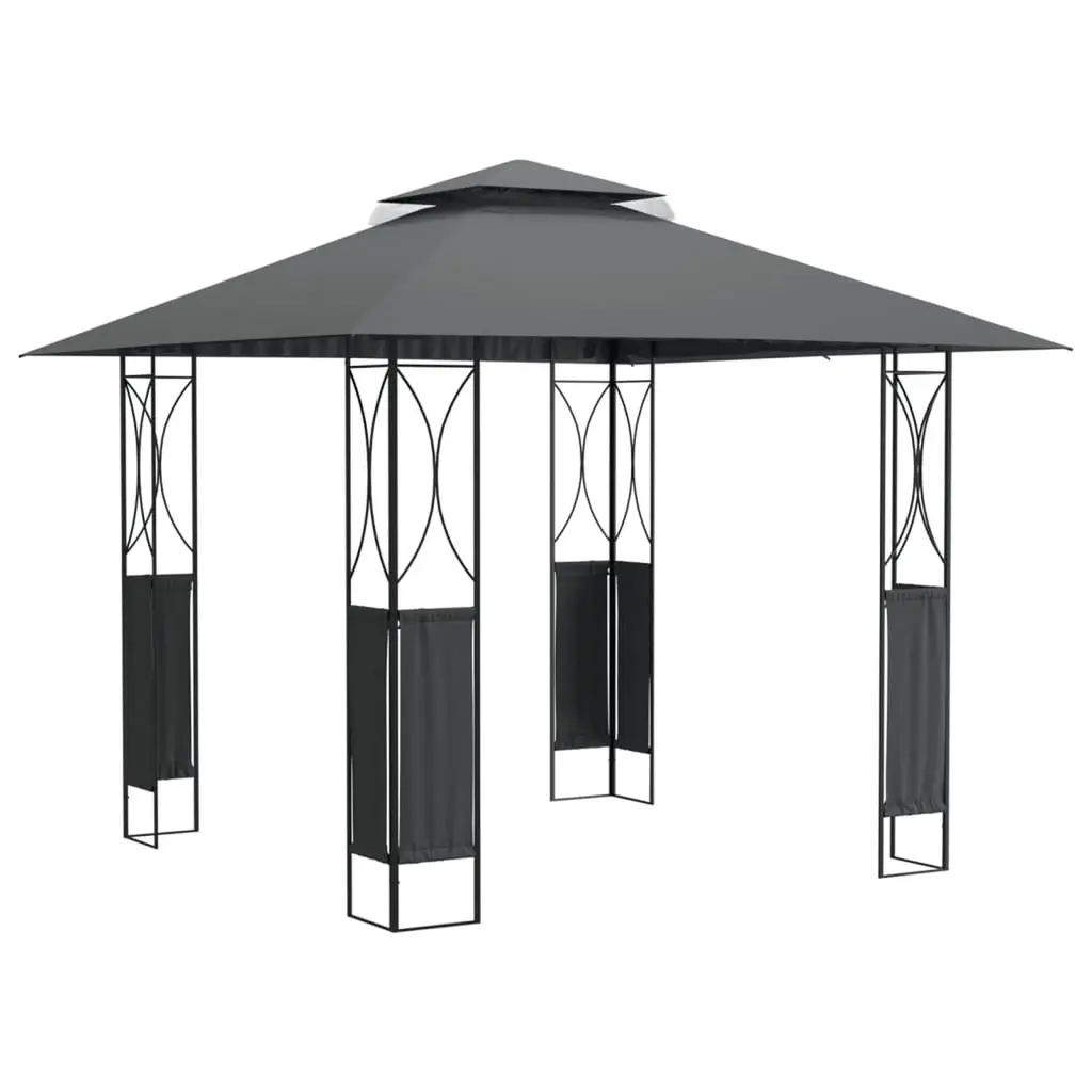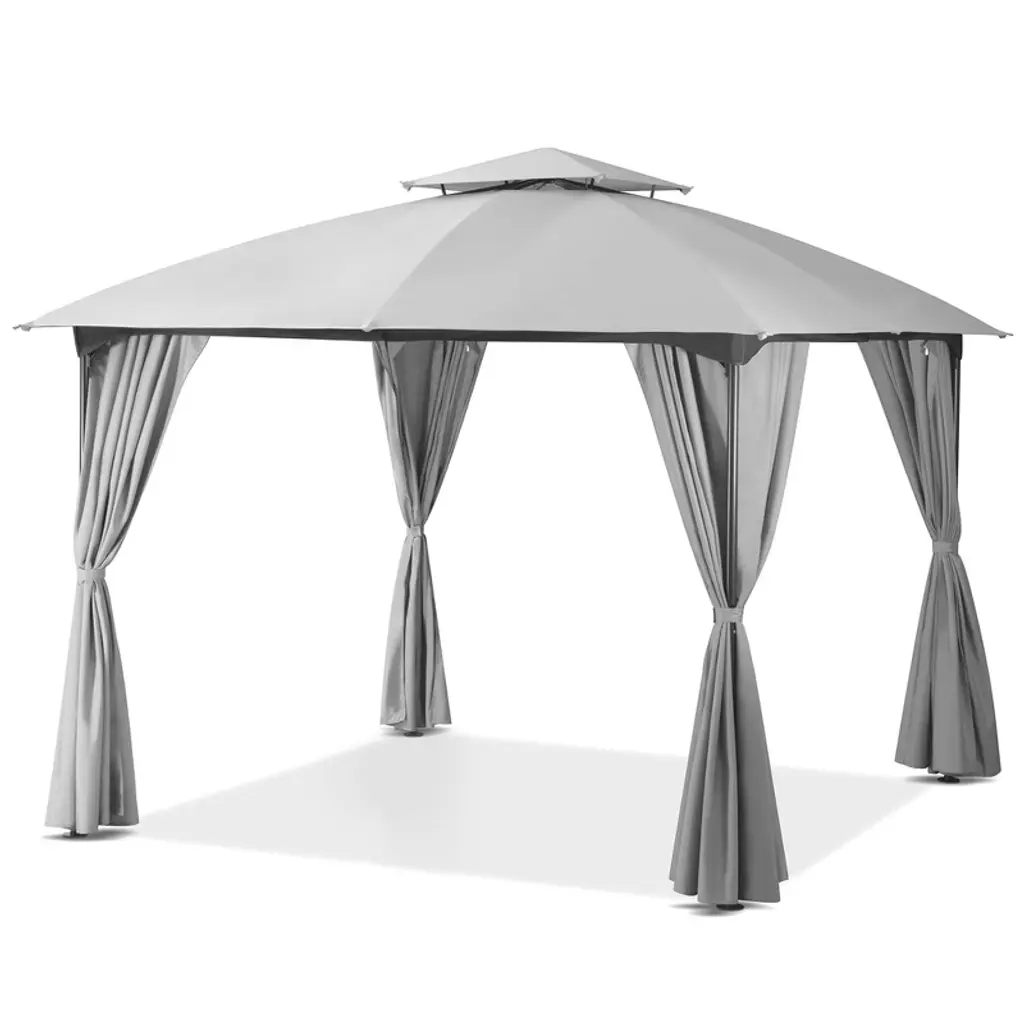 This gazebo with curtains features a classic and graceful design. It will make the perfect sunshade retreat for outdoor events, such as dinners, BBQs, family gatherings and so on.The water-proof roof and curtains are made of polyester fabric with PA coating. The frame is solidly constructed from strong powder-coated steel, and therefore it is considerably stable. The canopy features a stylish double-vented design that allows for better ventilation. Additionally, the easy-to-clean polyester curtains can be closed to provide more privacy or kept out of the way with the included tiebacks.This gazebo will definitely be a perfect choice for your garden get-togethers. The tent is easy to assemble.NOTE: This product should NEVER be used under bad weather, such as strong wind, heavy rain, snow, storm, etc.
