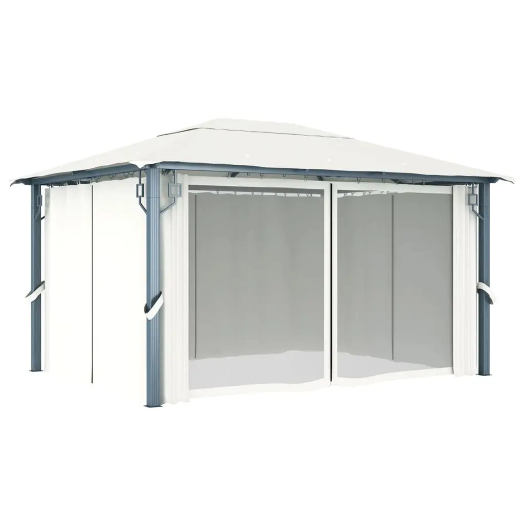 Vidaxl Gazebo With Curtain 157.5"x118.1" Cream Aluminum