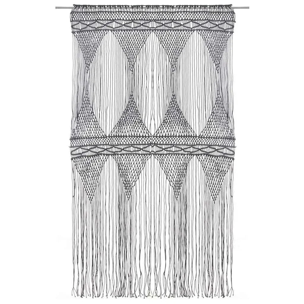 This practical string curtain with macrame presents a great way to decorate your interior. It can be used as a door curtain, window curtain, room divider or a background for a shop window display.The curtain is made of 80% cotton and 20% polyester, and washable at low temperatures. If needed, the curtain is easy to cut to any required size. The curtain has a tunnel top, which makes it easy to attach to a curtain rod.Please note that curtain rod is not included.
