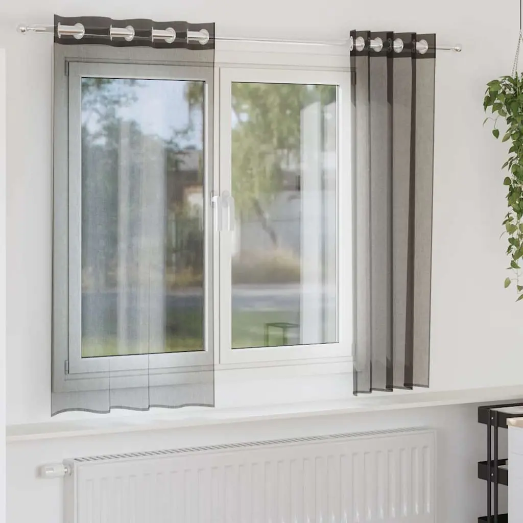 Vidaxl Voile Curtains With Grommets 2 Pcs Black 55.1x68.9"
