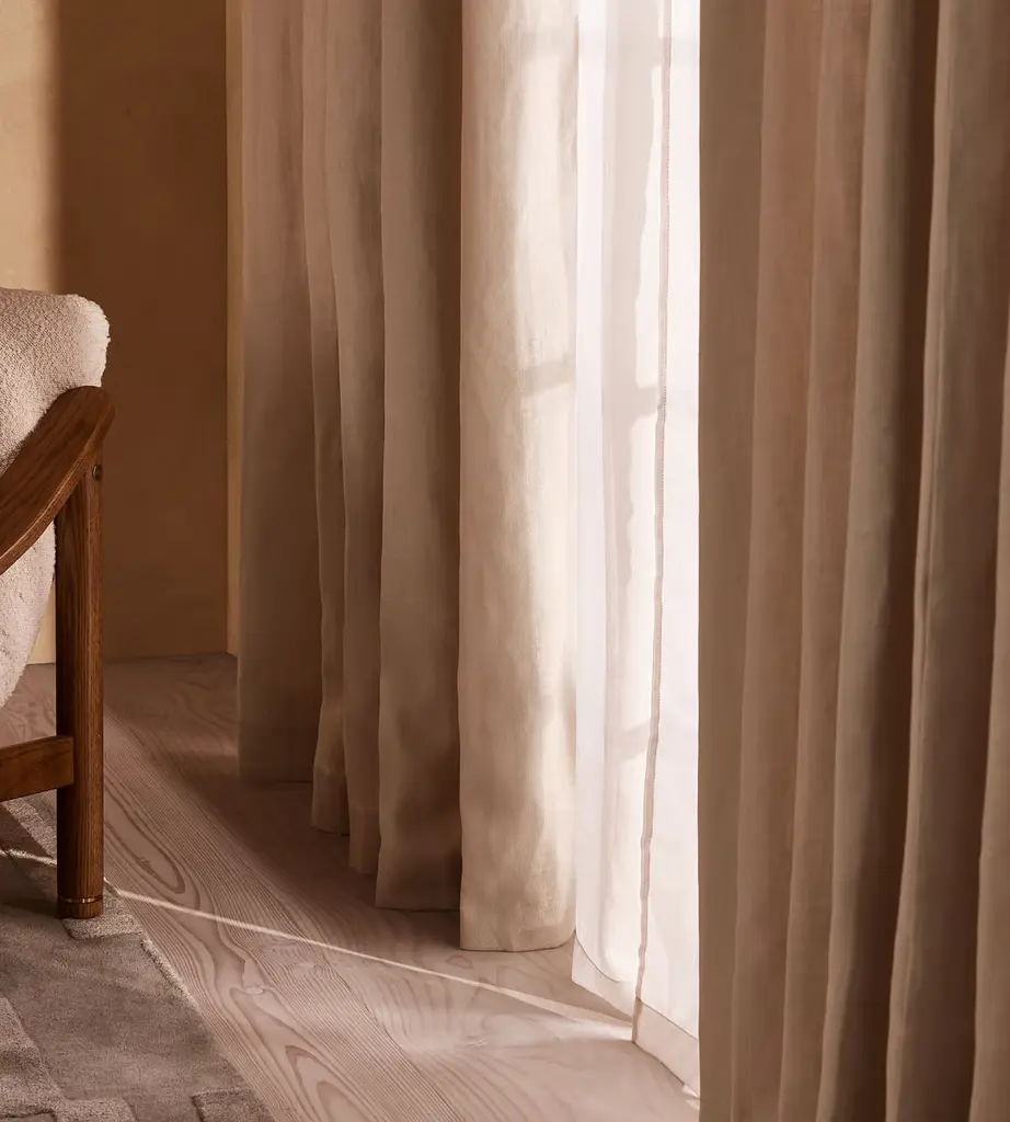 Crafted in the UK from pure linen, this pair of curtains comes in three curated colours. Inspired by the natural textures seen in Soho Farmhouse, our Vinnie curtains are crafted from natural linen in three colours, which are designed to match back to our made-to-order upholstery palette. Lined with a ticking stripe, this pair has an adjustable pencil pleat header that is suitable for a curtain pole or track.