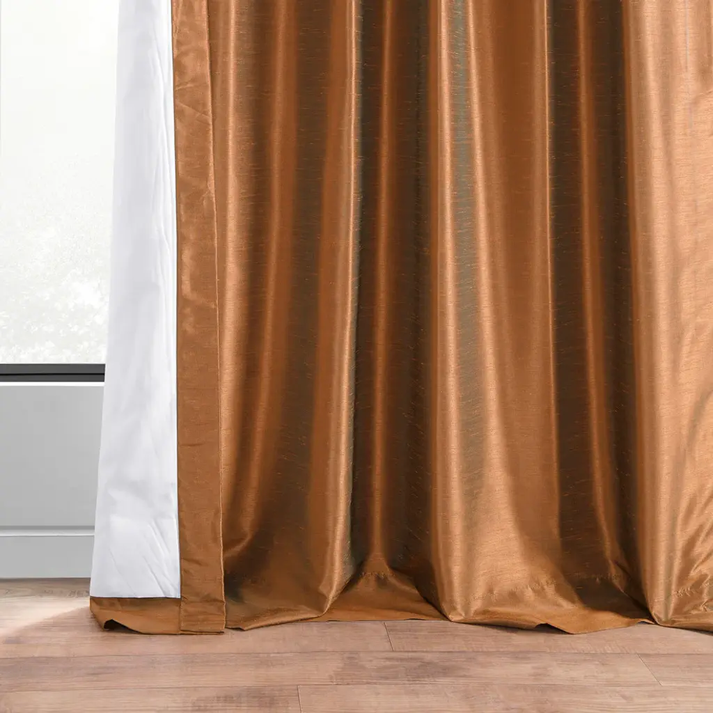 Our faux dupioni silks are the best value around for home decor projects where real silk is not practical. With low sheen and slubs that run Horizontally this fabric has look and feel of vintage dupioni silk. Woven from 100% polyester.Sold Per Panel100% Polyester & Lined3 inch Pole Pocket with Back Tabs & Hook BeltWeighted HemDry Clean Only