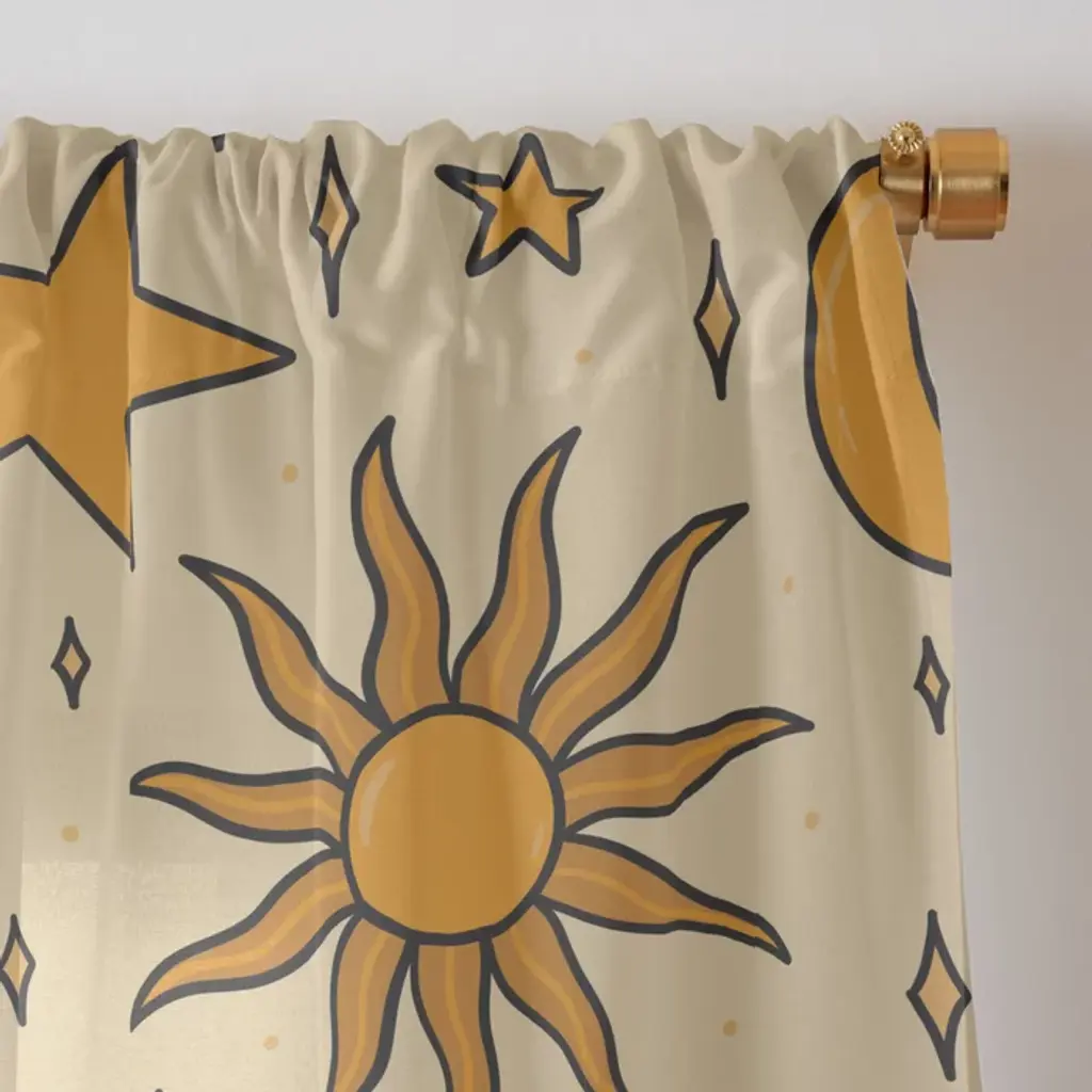 Vintage Sun And Star Print Curtain