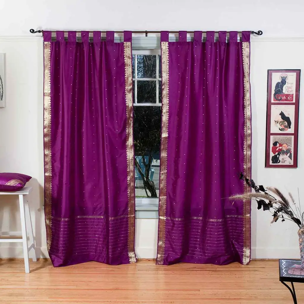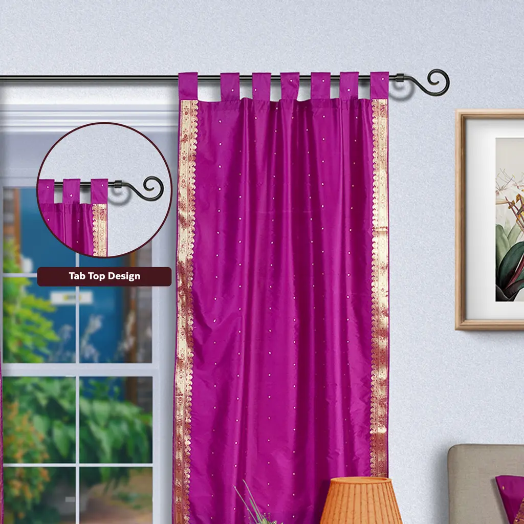 Violet Red Tab Top Sheer Sari Curtain / Drape / Panel - Piece