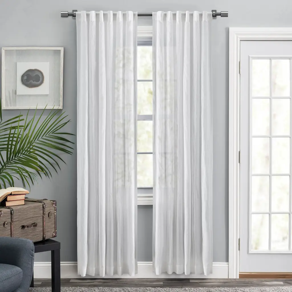 Breezy and fresh, these semi-sheer cotton curtain panels add privacy while letting light through. With vertical pin-tucked stripes, they are elegant enough to hang alone or layered with other window treatments and easily installed to display with either a bunched or a pleated effect.