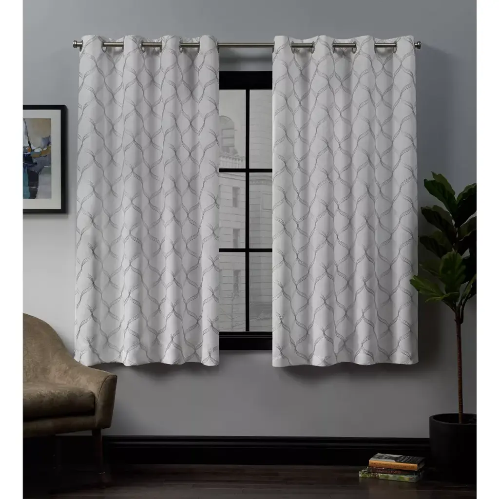 These Jacquard Textured Grommet-Top Window Panels are blackout which blocks over 99% of sunlight than ordinary curtains. These curtains are perfect for anyone who is a daytime sleepers who works at night. An Abstract Jacquard textured Theme fabric that will add color and upscale styling to any room. These Jacquard Textured Blackout Panels sold as a set of two in each package (76" wide for pair / 38" each). • Royal Tradition Brand • 100% Polyester Panels • Sold in Pairs (Each Package contains Two Panels) • Machine washable in cold water • Blocks Over 99% Of Sunlight than ordinary curtains • Energy Saving, Save on home heating and cooling costs • Thermal-Insulated Blackout Curtain, Noise Reduction & More privacy • Stainless Steel 6 Grommets / Eyelet with 1.6 Inch Internal grommet diameterAvailable Sizes Include: • 76"W X 63"L Pair (38"W X 63"L Each) • 76"W X 84"L Pair (38"W X 84"L Each) • 76"W X 96"L Pair (38"W X 96"L Each) • 76"W X 108"L Pair (38"W X 108"L Each)