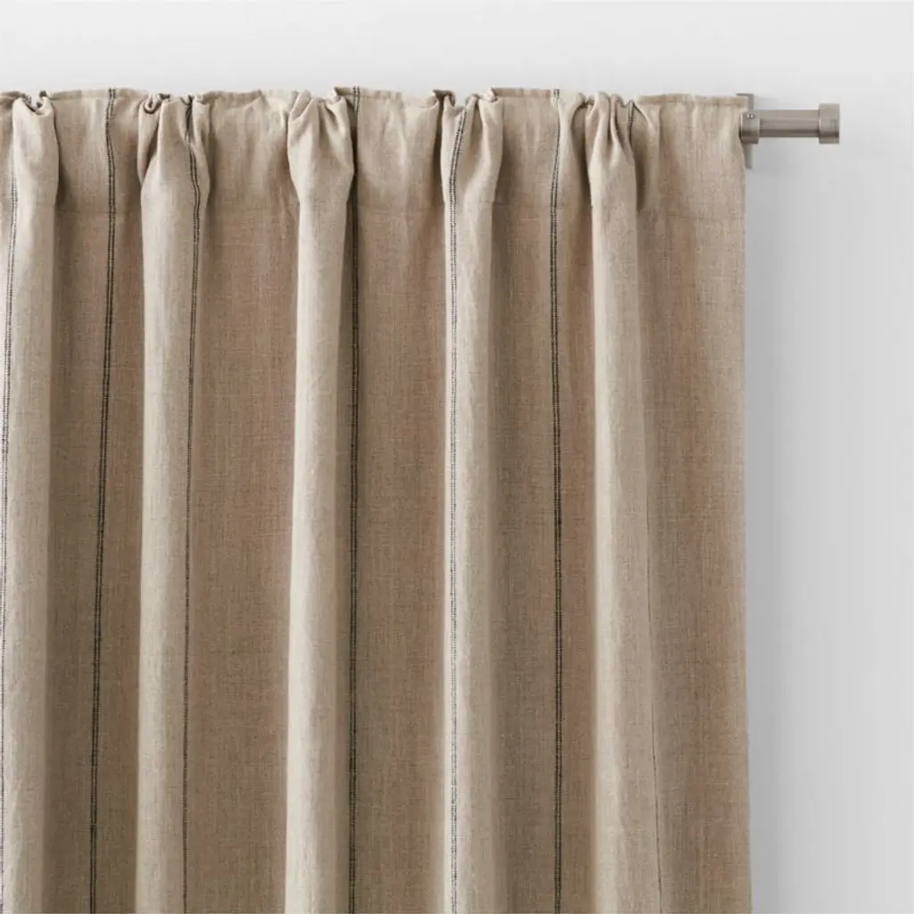 Warm Beige & Storm Grey Linen Double Pinstripe Window Curtain Panel 52"x108"