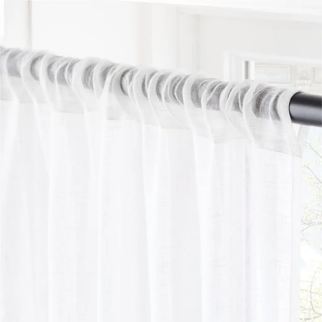 Sheer ivory linen instantly lightens up any space. Airy curtain panel drapes beautifully alone or layers in lovely contrast with heavier panels. CB2 exclusive.
