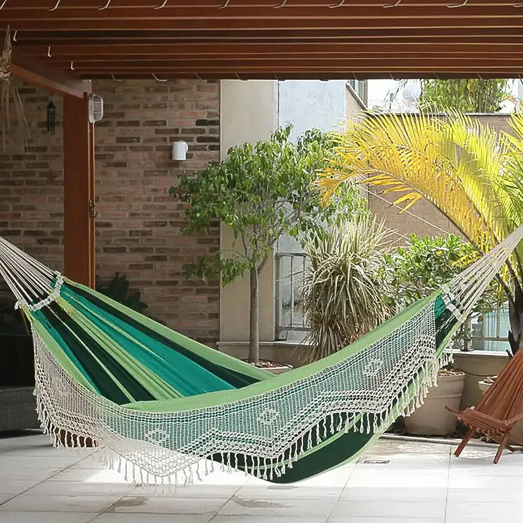 This outdoor sun lounger combines elegance, comfort, and durability to enhance your outdoor space. Featuring a canopy for shade and thick cushions with pillows for added comfort, it offers the perfect spot for relaxation. The high-quality rubber core rope weaving ensures long-lasting resilience, while its versatile design allows it to be used for sunbathing, lounging, or reading. Though the cushions are water-resistant, it’s recommended to store the lounger indoors during heavy rain to maintain its appearance and extend its lifespan.