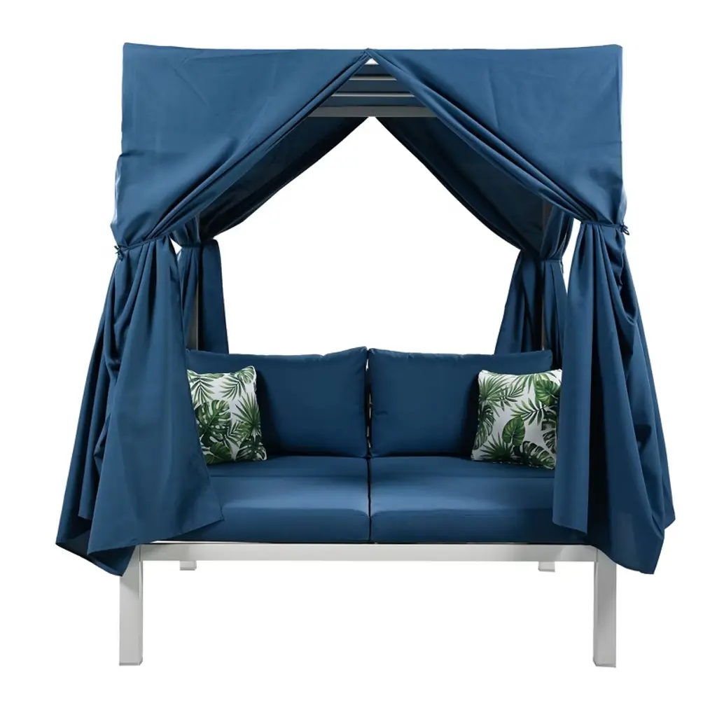 Whisen Outdoor Patio Sunbed With Curtains, High Comfort, Suitable For Multiple Scenarios - Blue