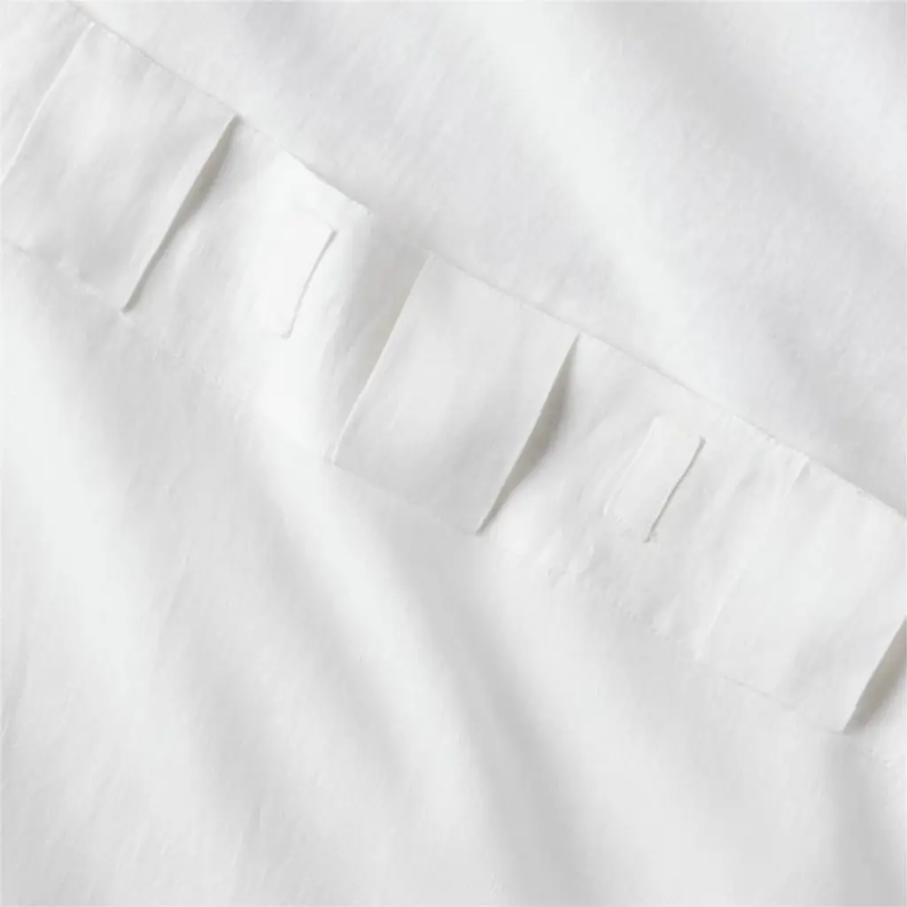 Light-filtering linen drapery is woven from natural flax grown in Europe. Full-length in gauzy white. Hangs beautifully with back tabs, rod pocket or drapery hooks. CB2 exclusive.