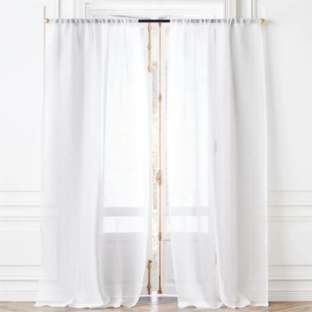 Sheer white linen instantly lightens up any space. Airy curtain panel drapes beautifully alone or layers in lovely contrast with heavier panels. CB2 exclusive.