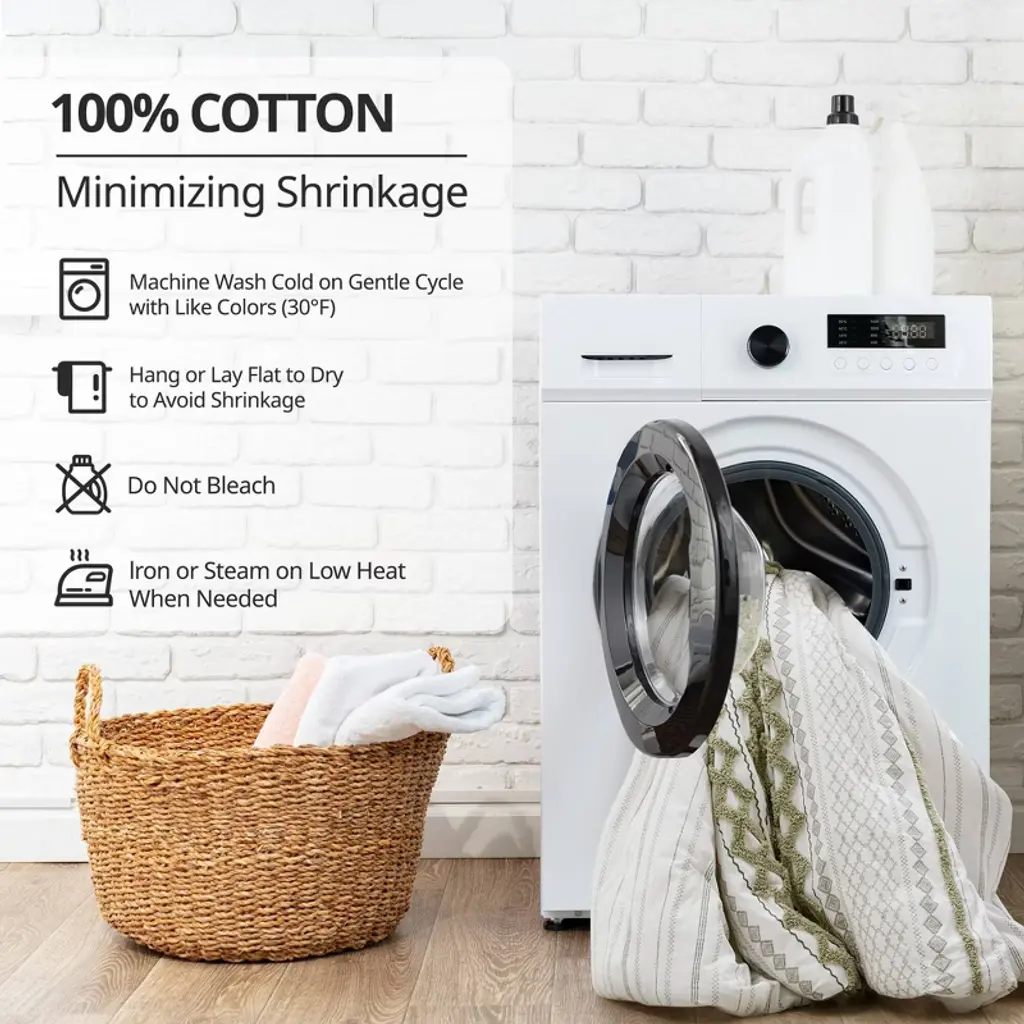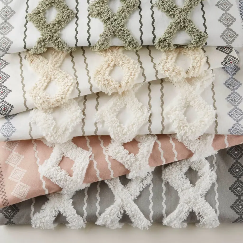 100% cotton printed with tufted chenille stripe trim window curtain panel