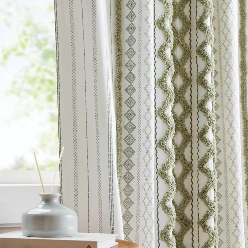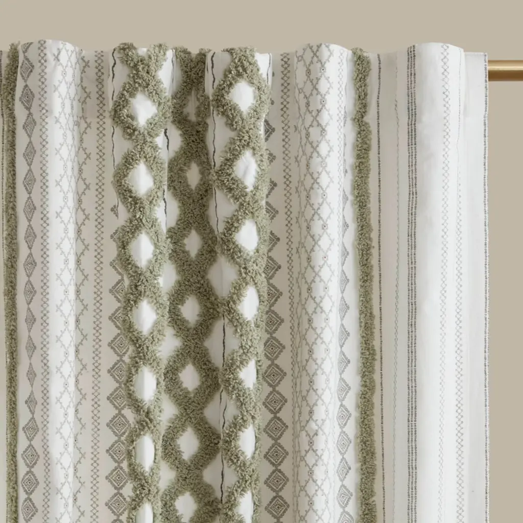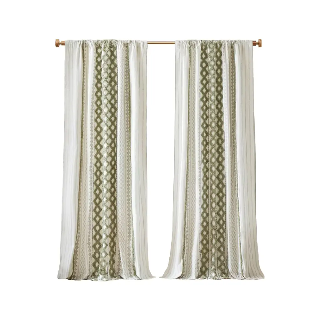 Wikineon 1 Pcs 50x95" Cotton Printed Curtain Panel With Chenille Stripe And Lining Green.