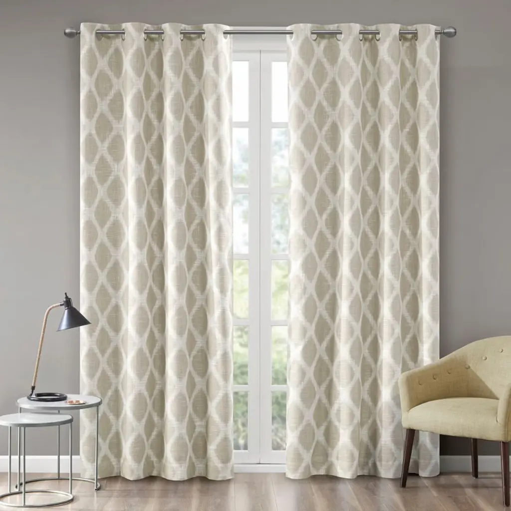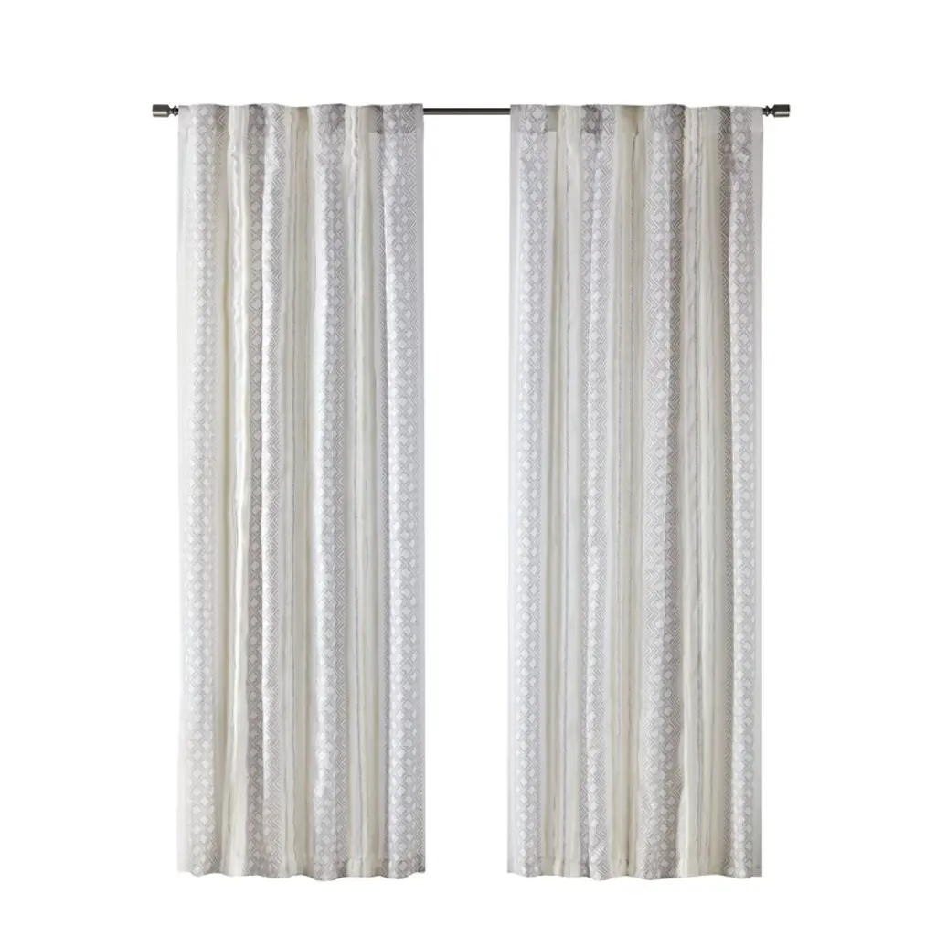 Wikineon 2Pk Poly Printed Curtain Panel With Tufted Stripe White/taupe 2-pk 50x95 Multicolor