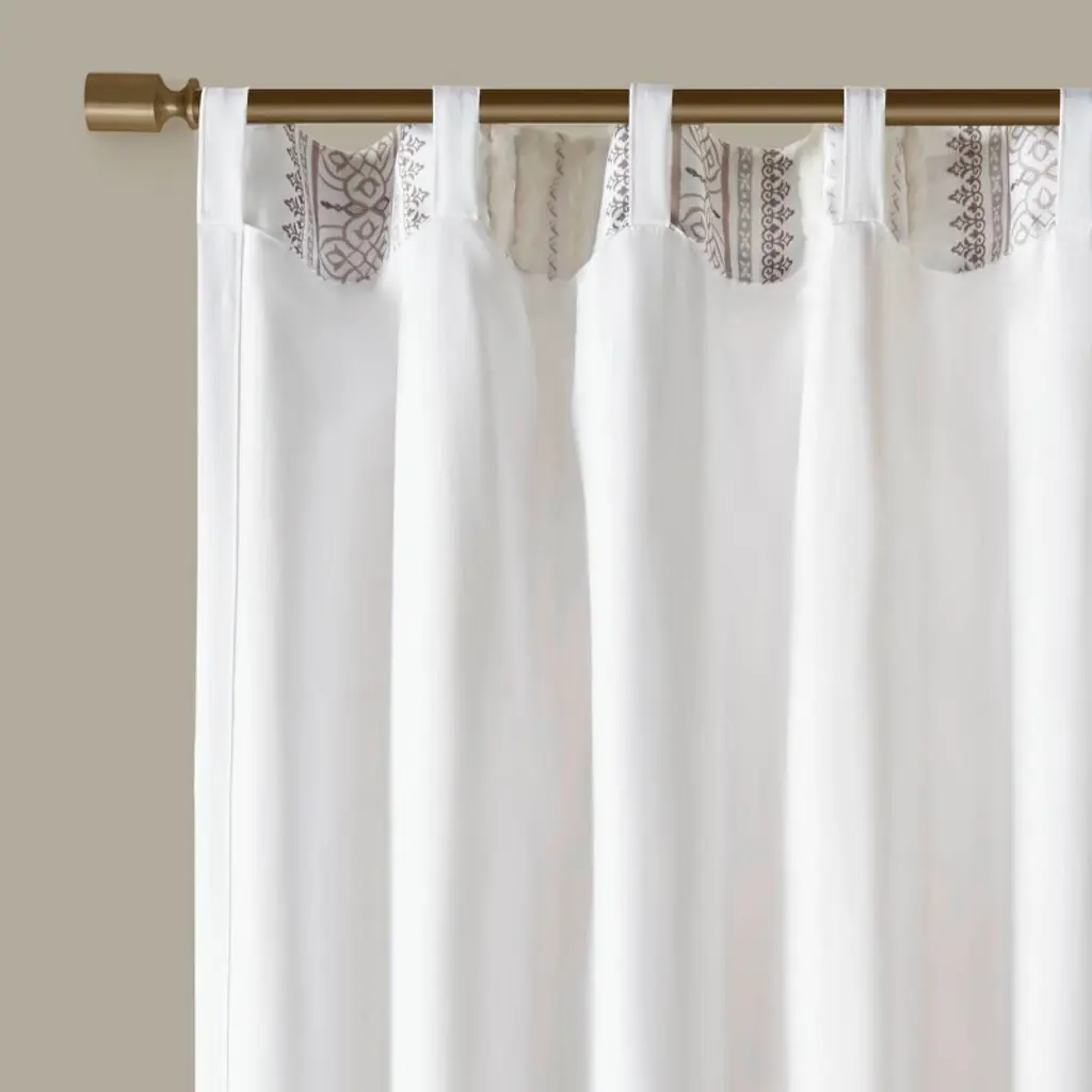 Wikineon Poly Printed Curtain Panel With Tufted Stripe And Lining White/brown 50x95