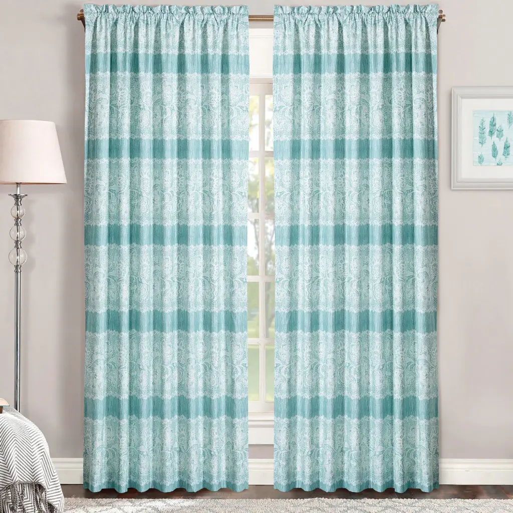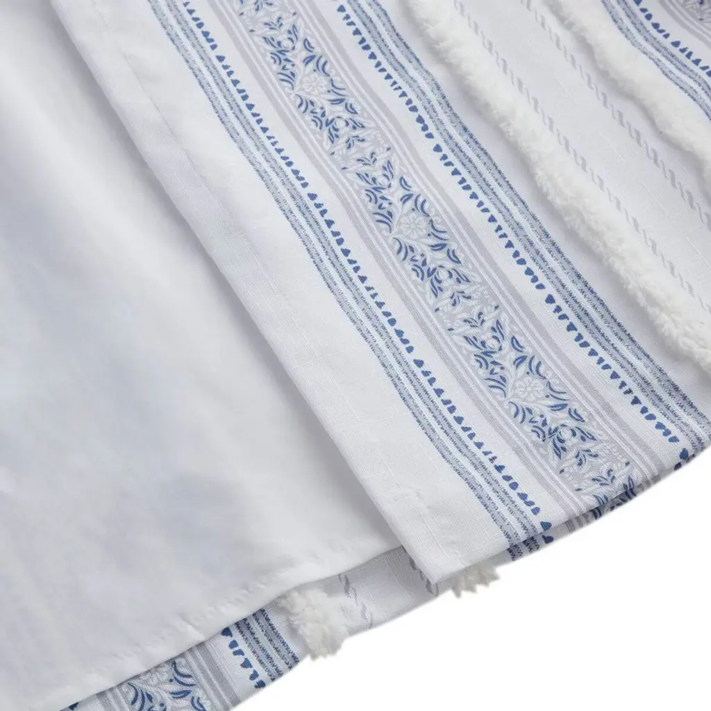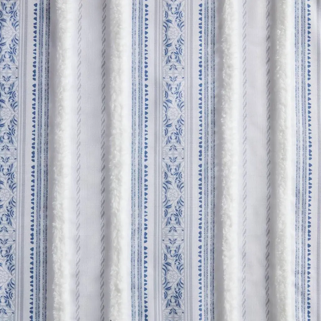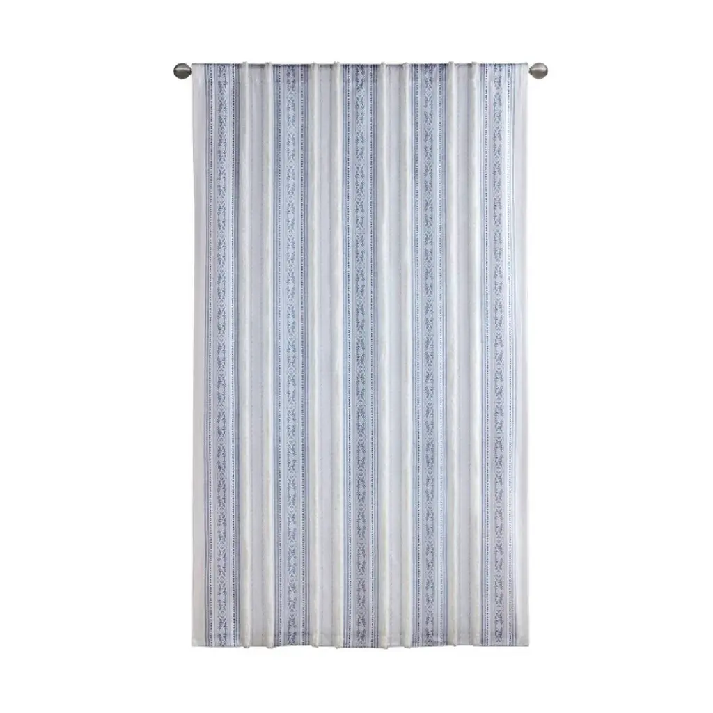 Wikineon Poly Printed Curtain Panel With Tufted Stripe And Lining White/navy 50x95