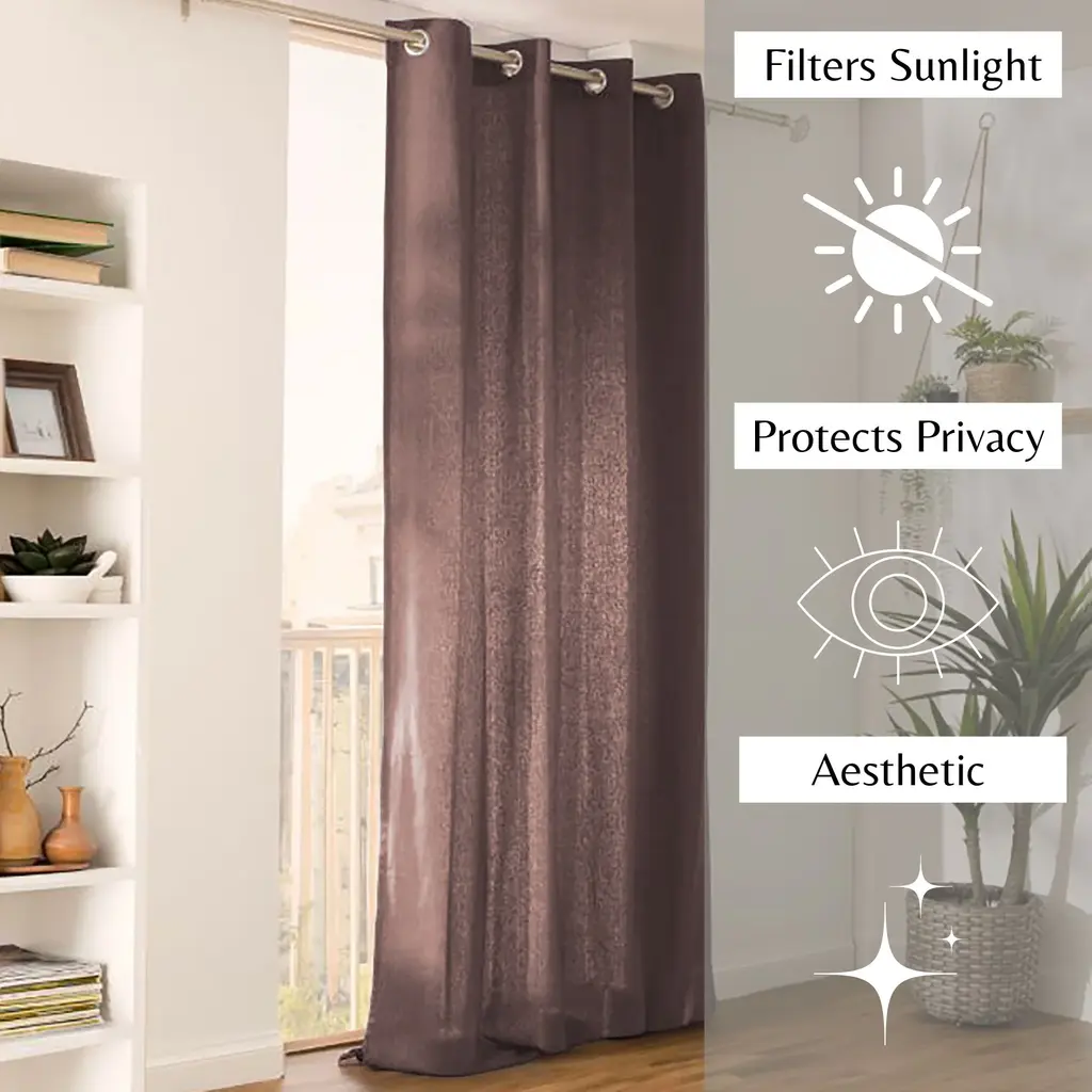 INTEMPORARY STYLE: Our brown cotton curtain has timeless appeal, adding depth and warmth to any room's decor with its rich colorPURE COTTON COMFORT: Enjoy the luxurious feel of 100% cotton, offering a soft texture that complements the comfort of your homeMETAL GROMMETS: Equipped with sturdy eyelets, this modern drape ensures smooth hanging and adds a touch of elegance to any roomVERSATILITY: Whether living room or bedroom, this universal charm of this curtain enhances the privacy and style of any spacePERFECT FIT: With dimensions of 95x55 inches, this curtain panel covers a full-length window and provides light controlIntroduce timeless elegance to your interior with our 100% Cotton Mocha Window Curtain. The light-filtering capability gently bathes your room in sunlight, creating a serene ambiance. Moreover, the window curtain ensures your privacy, perfect for those lonely moments. Also, its generous dimensions adapt to a wide range of window sizes. This modern drape offers great versatility in your home. The rich mocha shade of this decorative panel effortlessly enriches any room, adding depth and warmth to your decor. Furthermore, the cotton material adds a layer of texture and ensures durability and ease of care. Installation is a breeze, allowing you to refresh your space with minimal effort. This drape is designed for those who appreciate both aesthetics and practicality in their decor. Additionally, it is easy to maintain, making sure your curtain panel remains a lasting element of elegance in your home. Sophisticated and practical, our 100% Cotton Mocha Window Curtain is an essential complement for anyone looking to enhance their living environment. Imported from France, Made in China