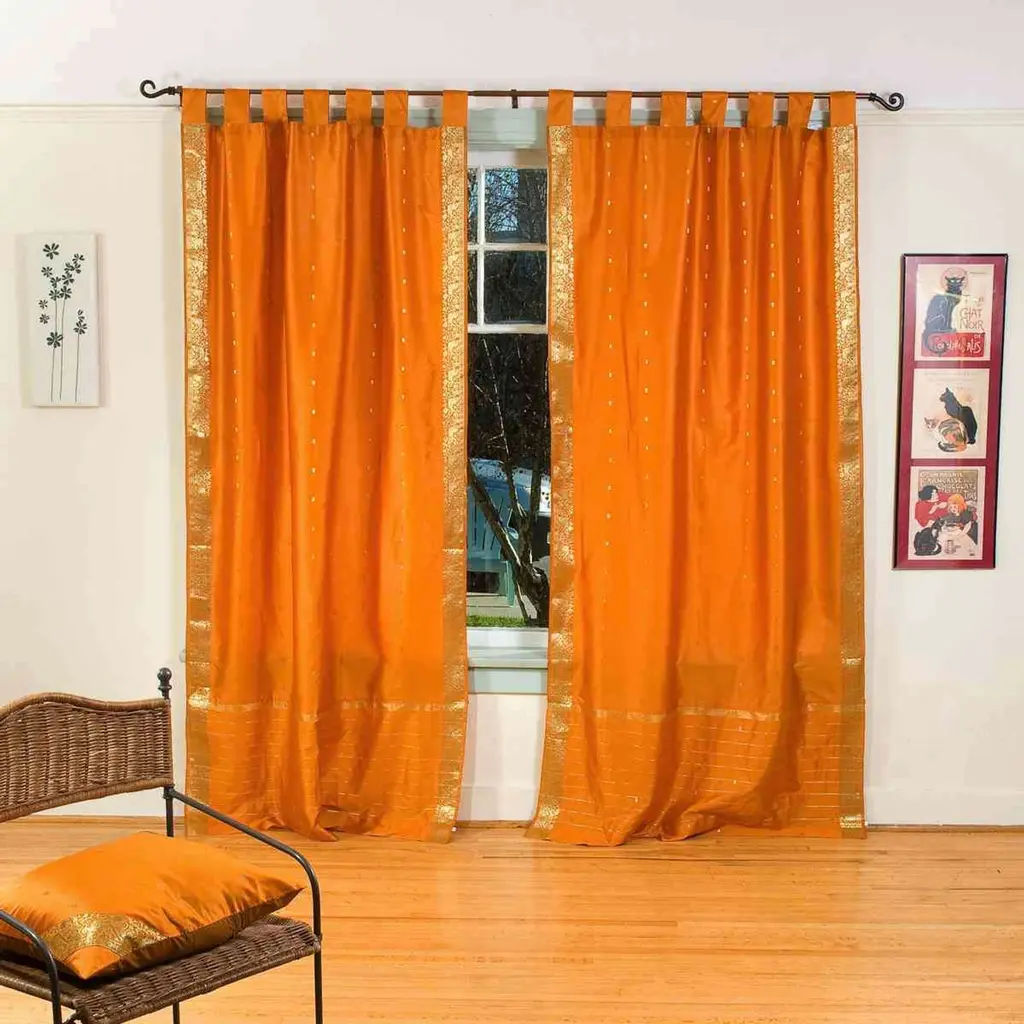 Yellow Tab Top Velvet Curtain / Drape / Panel - Piece